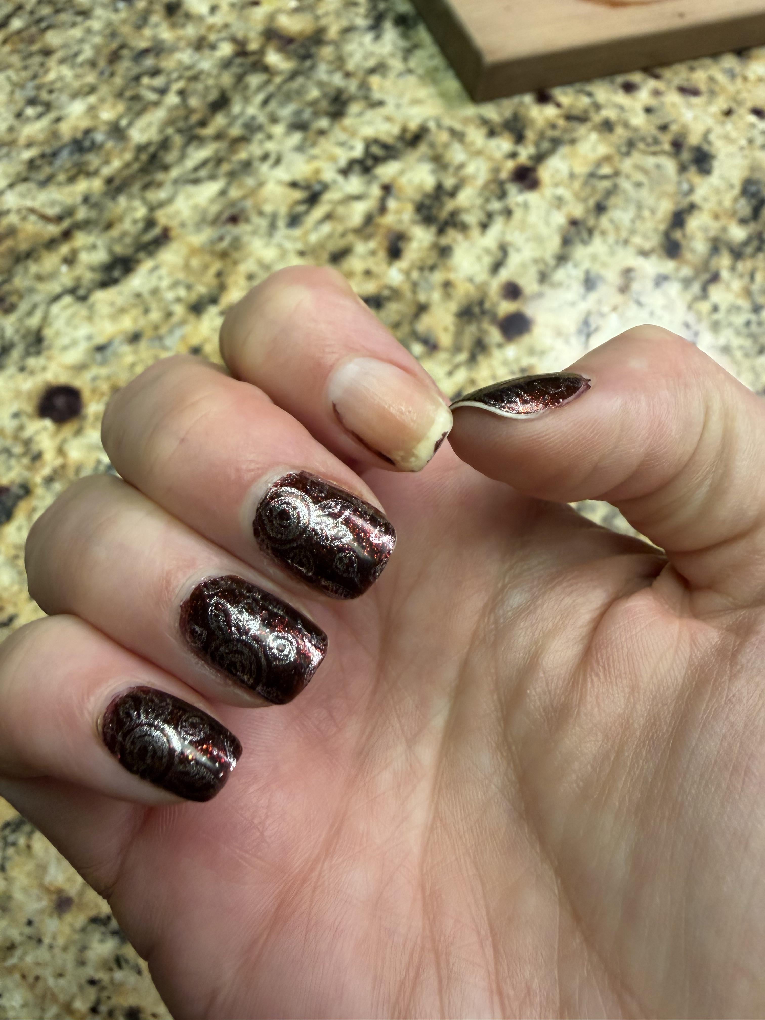 Haha omg I’m glad you found it! As soon as I get a chip on my nails, or if I’m using a grater, I wear gloves to avoid feeding my husband nail polish