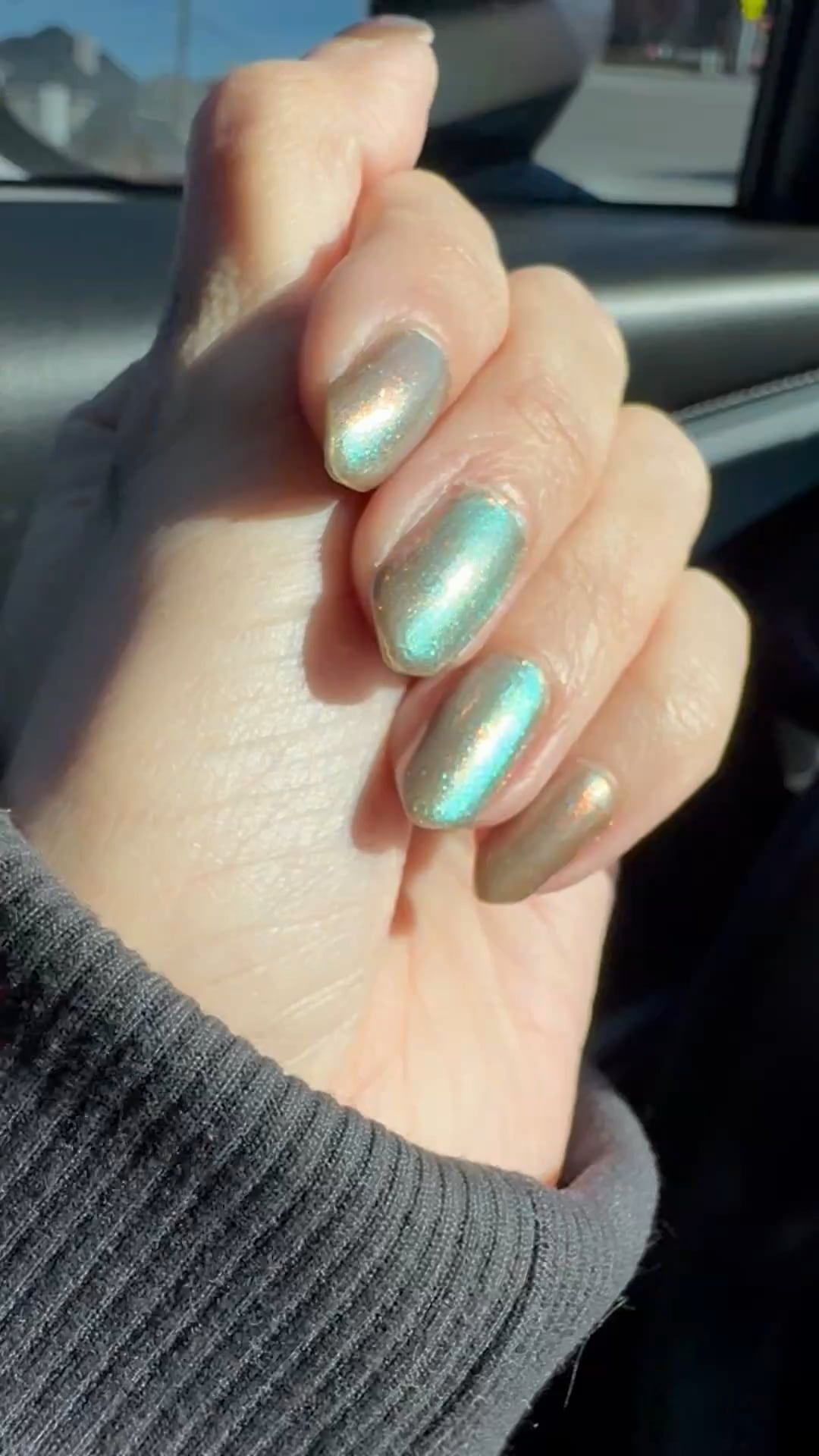 I love this color way more than anticipated. I’m going to try using a light pink/peach base coat and attempt a different magnetic technique next time in hopes to make the particles pop!