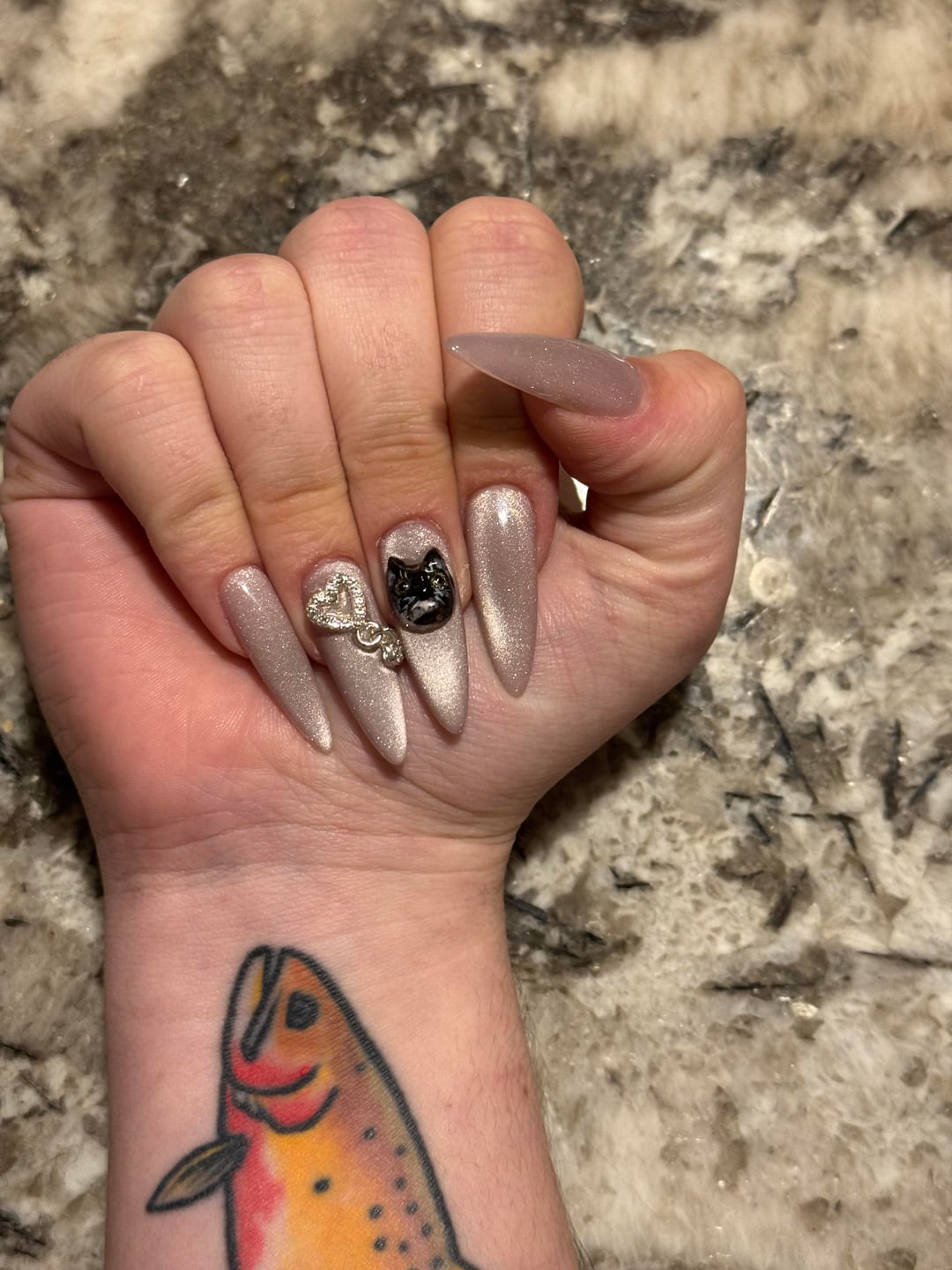 Some smearing from the top coat sadly, but i think theyre cute (pre cuticle oil so dry skin from the acetone)