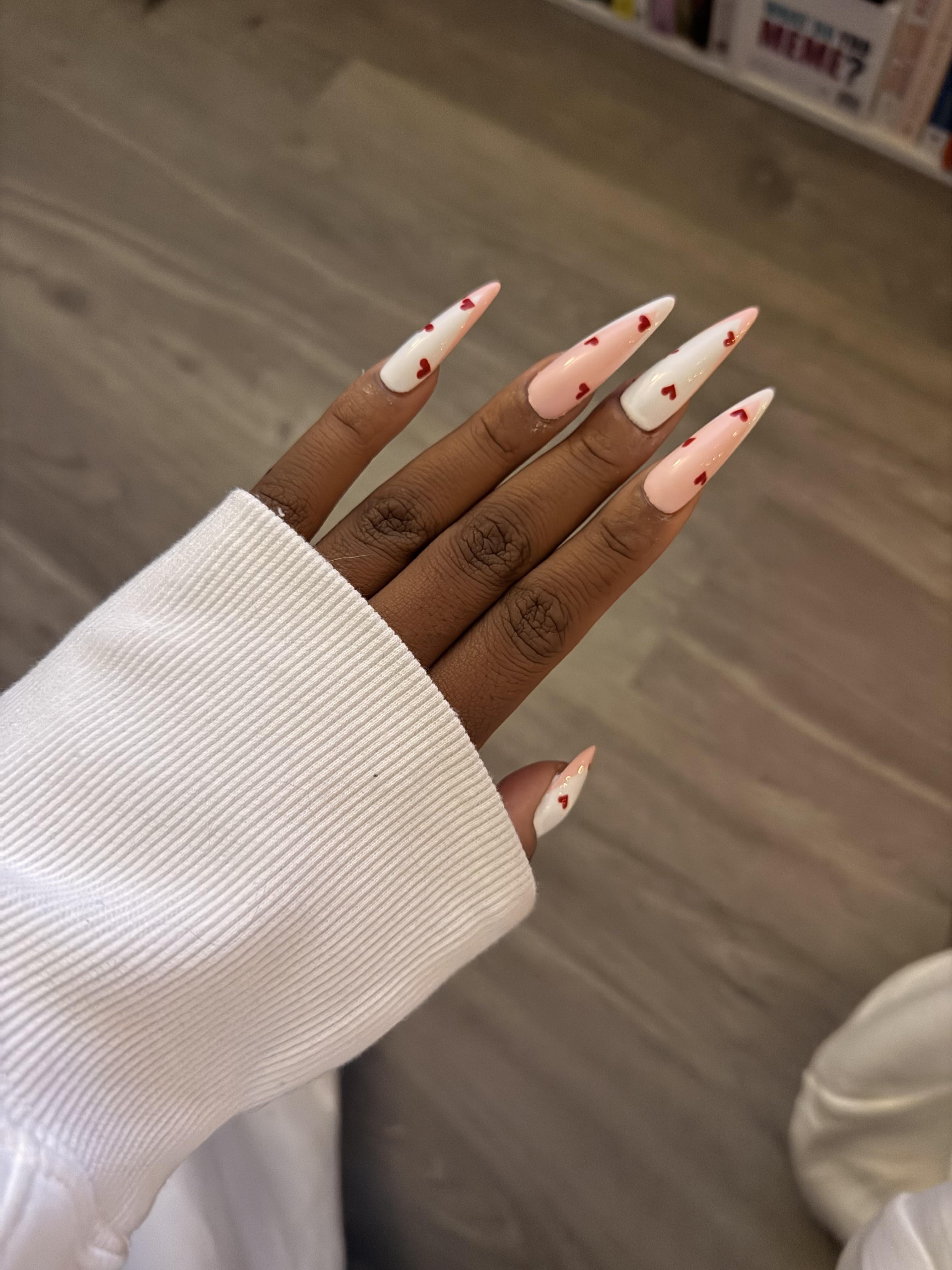 my nail tech gets me right every time 💅🏾 gel x x-long stiletto with thumbs cut to about medium/long length. do i have a valentine? nope! do i care? nope ✨ by soccerspritesleep