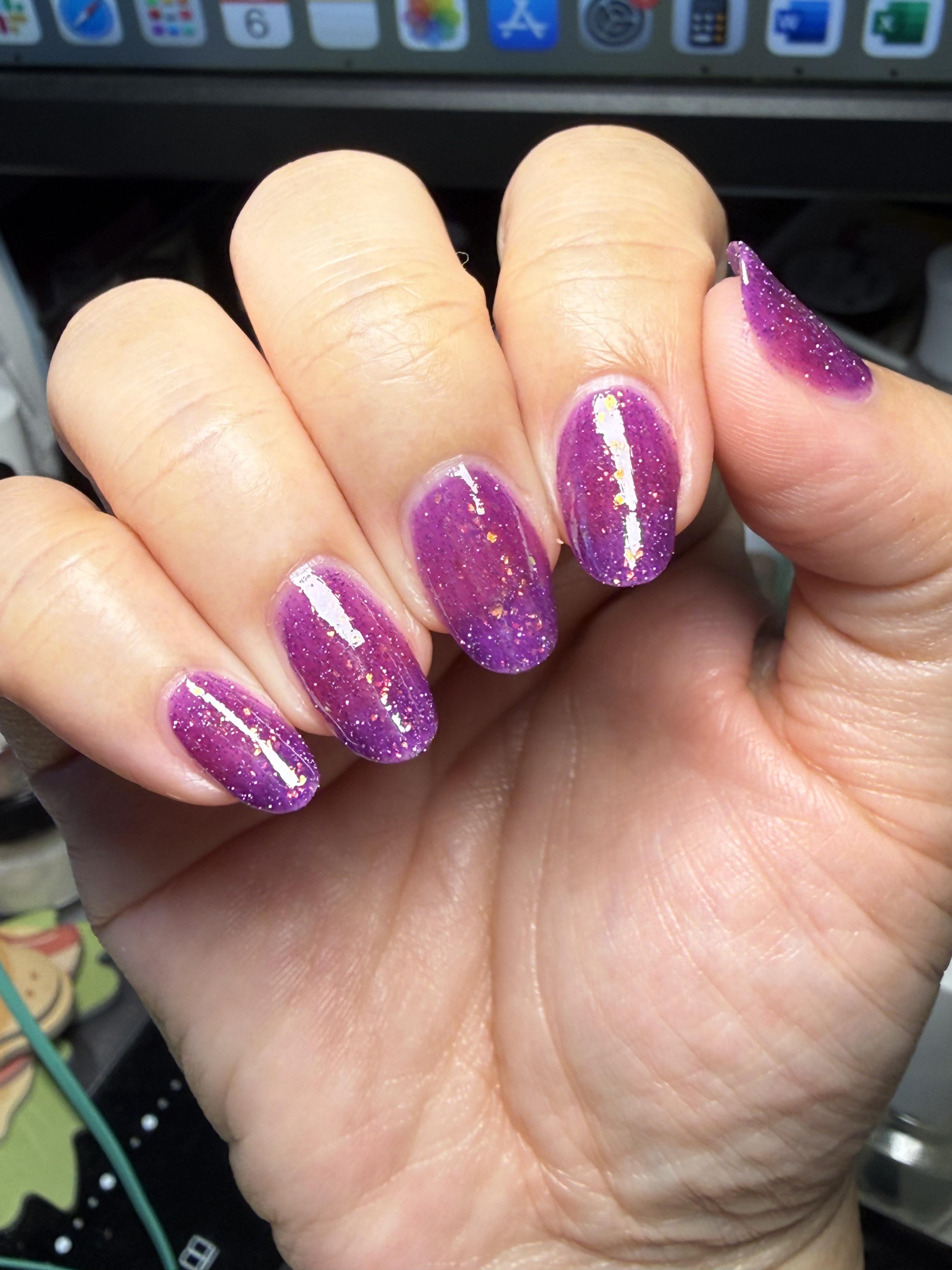 If you look closely on my nail beds this polish appears more warm tone and on the tips it is a cooler purple. Other people can see this too right it’s not just me… ? It shows how skin tone impacts the way colors can look on different people. Just thought it was interesting!