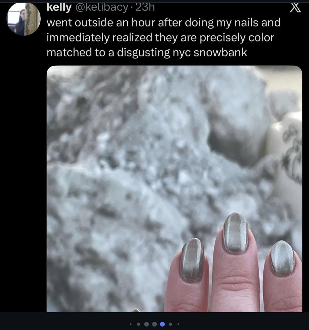 it was super cool to spot a random lacquerista in the wild showing off how their mani looks like NYC snowbanks😂