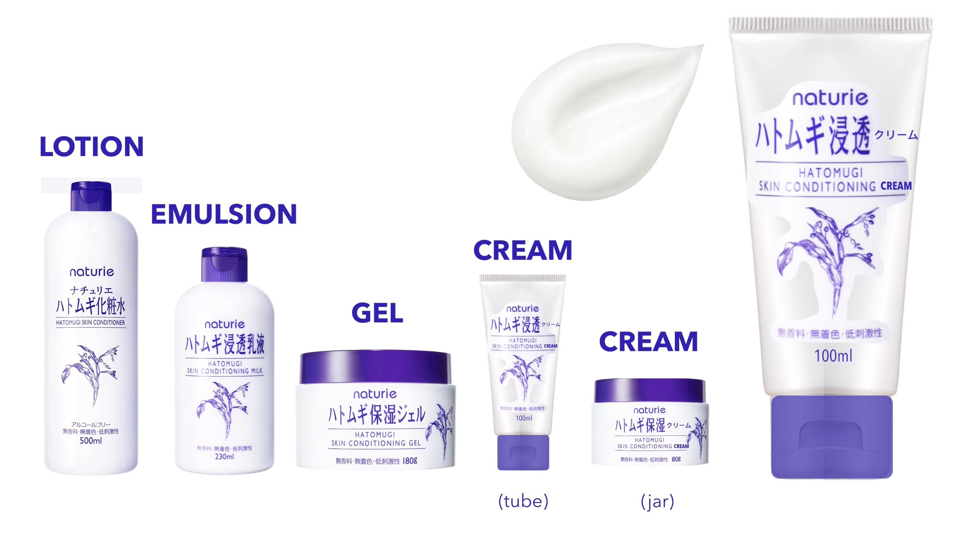 the picture is of japan’s naturie product range. they only have 3 products. the lotion, milk, and gel (left side). on the right side, those are edited photos for what i imagine the ‘cream’ product(s) would look like if the brand made it. in a tube VS in a jar. the big image on the far right is a zoomed in pic of the tube. basically a white or clear squeezable tube with a flip top cap that is in the same dark blue colour as their other caps; to keep the aesthetic coherent. the white blob on top is supposed to represent the thick texture of the imaginary cream product.