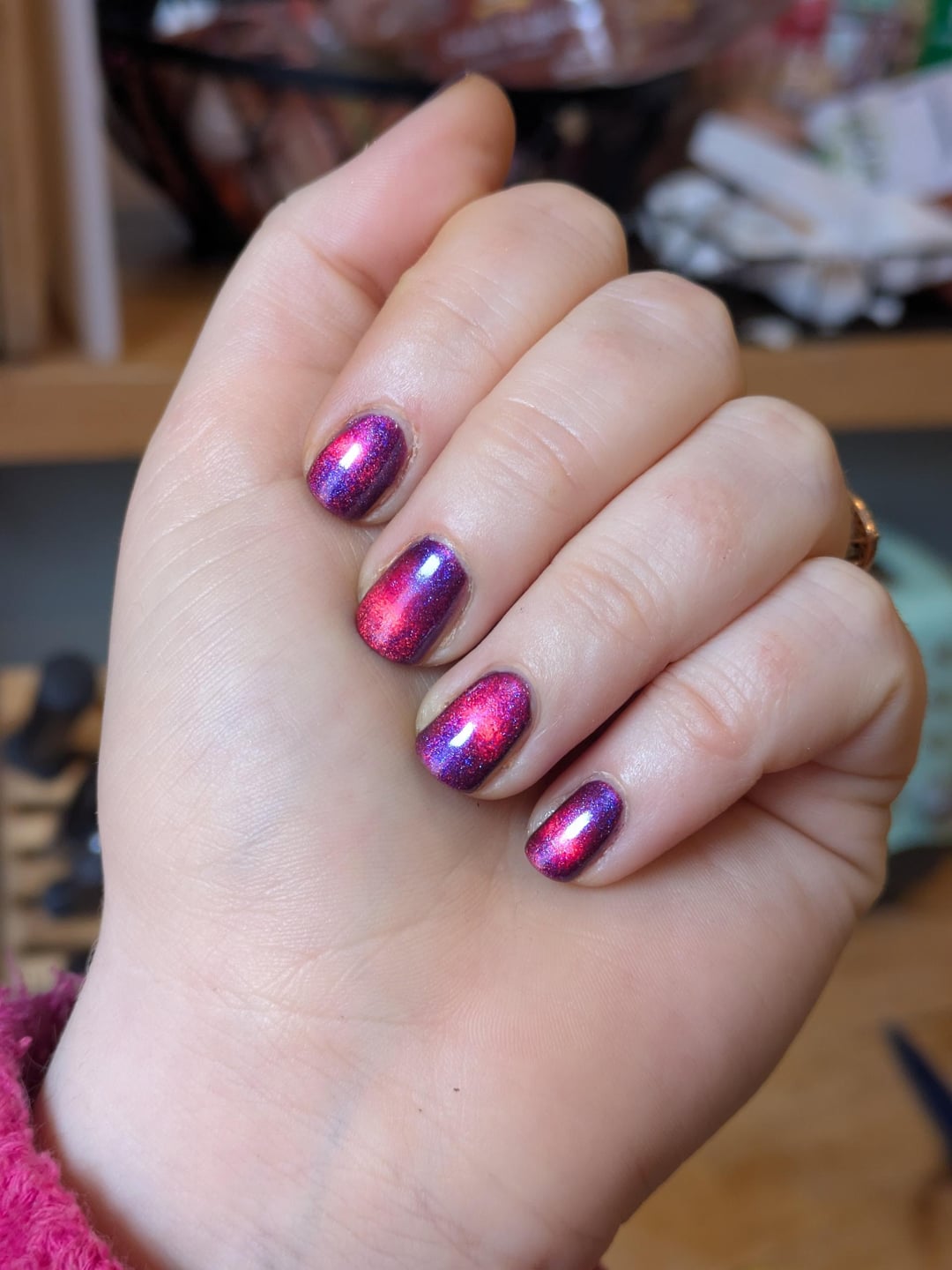 Top coat: Mooncat Speed Demon Top Coat, magnetized over stirrer for two minutes.
