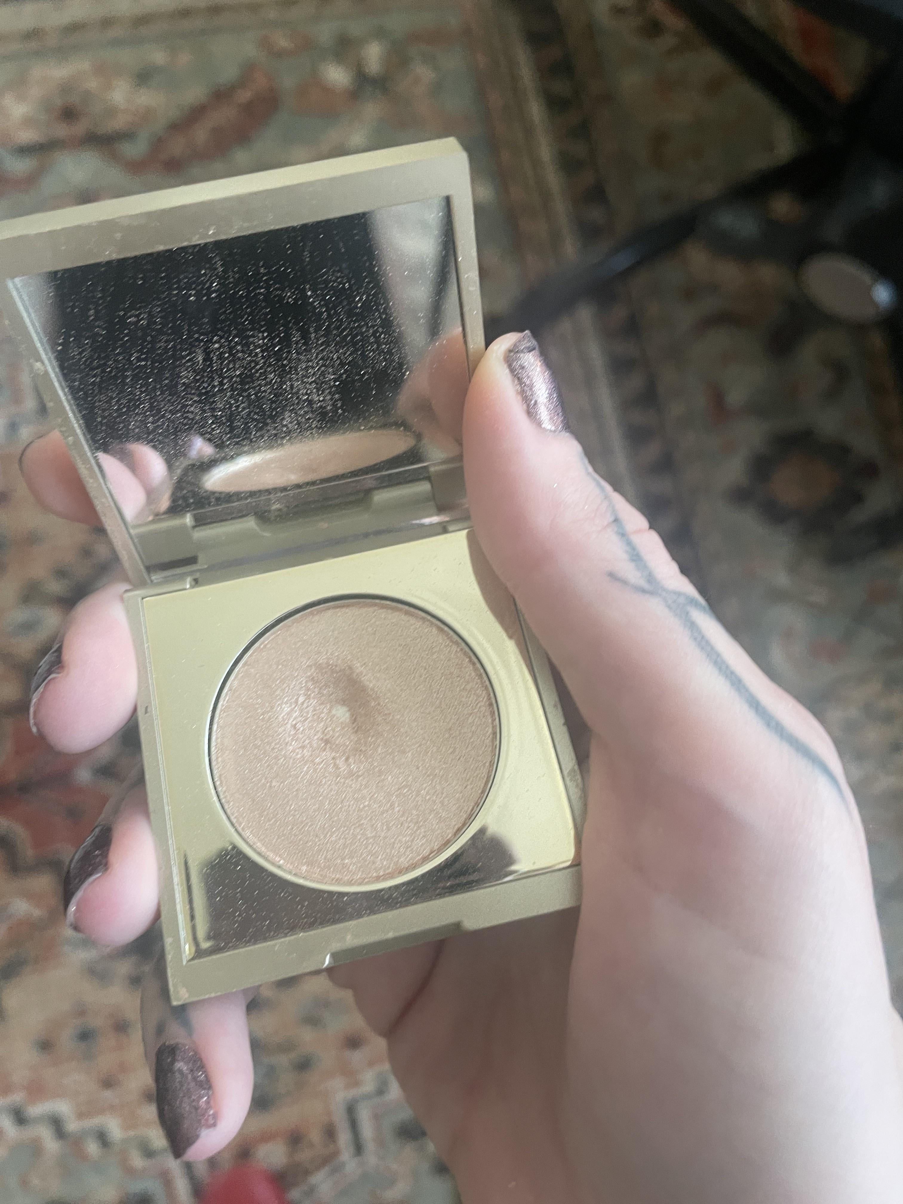 Product is Stila Kitten eyeshadow. I mostly use it in the inner corner, this took me over a year to hit pan. it’s going to take me forever to finish it! by marlscreamyeetrich