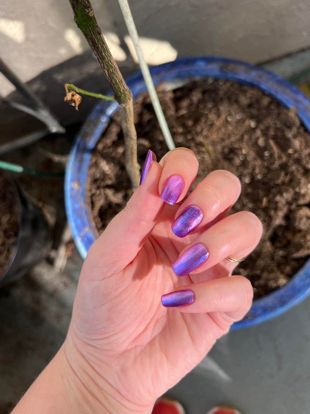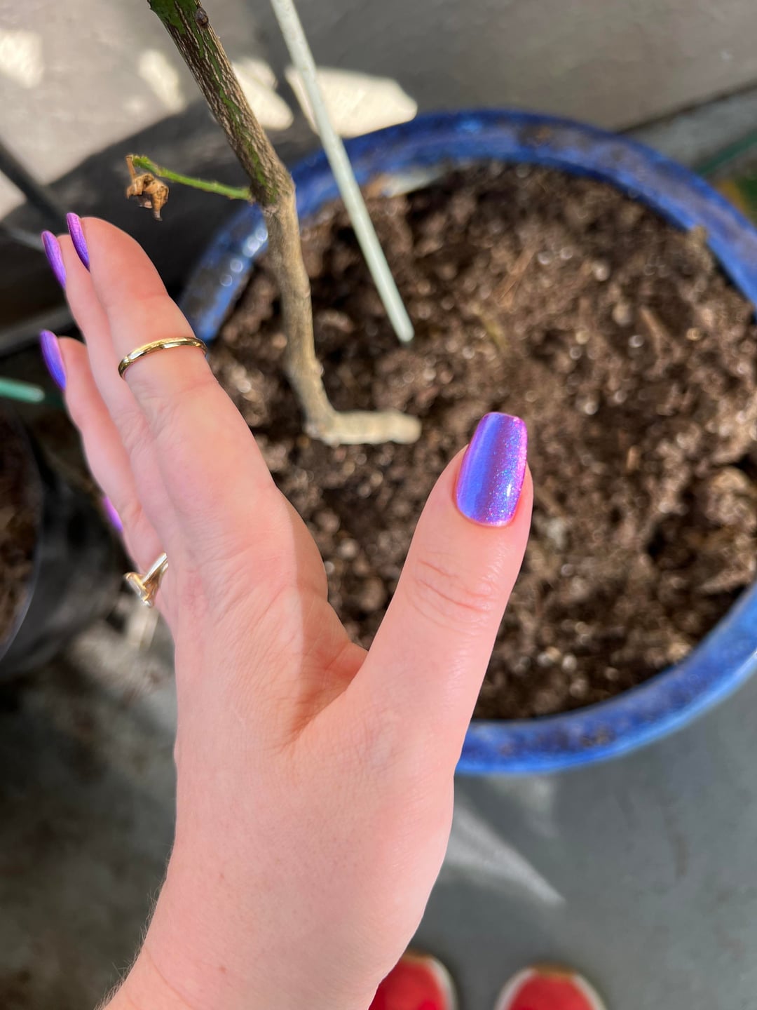 cracked polish- no reservations (two coats) thumb & pointer: glass bead middle: cat eye ring: velvet pinky- unmagnetized accidental peep of my sneakers in the last two pics 😂 by msteacher22