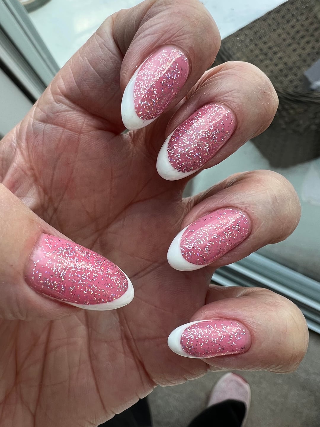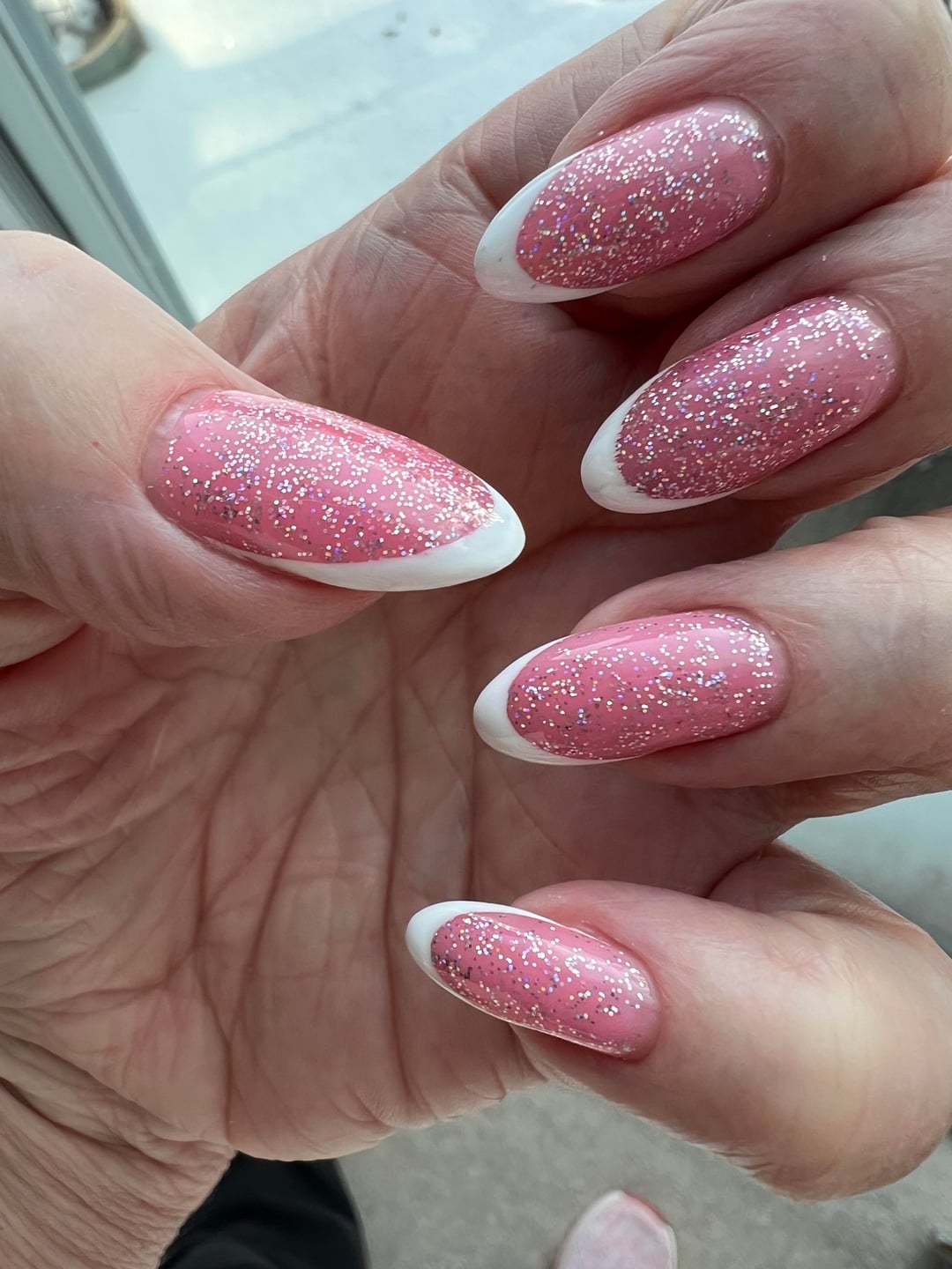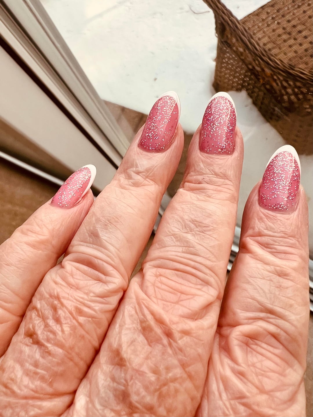 For my birthday and Valentines Day🥳💅💗Pink sparkles with a delicate French to celebrate 🫶😍🥳💕