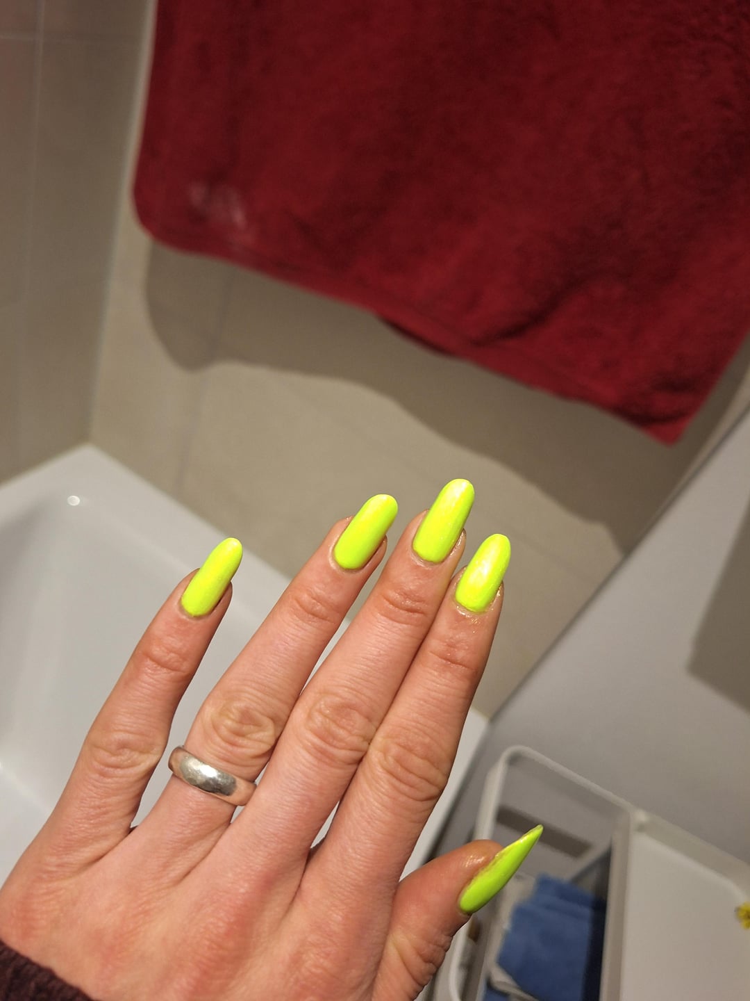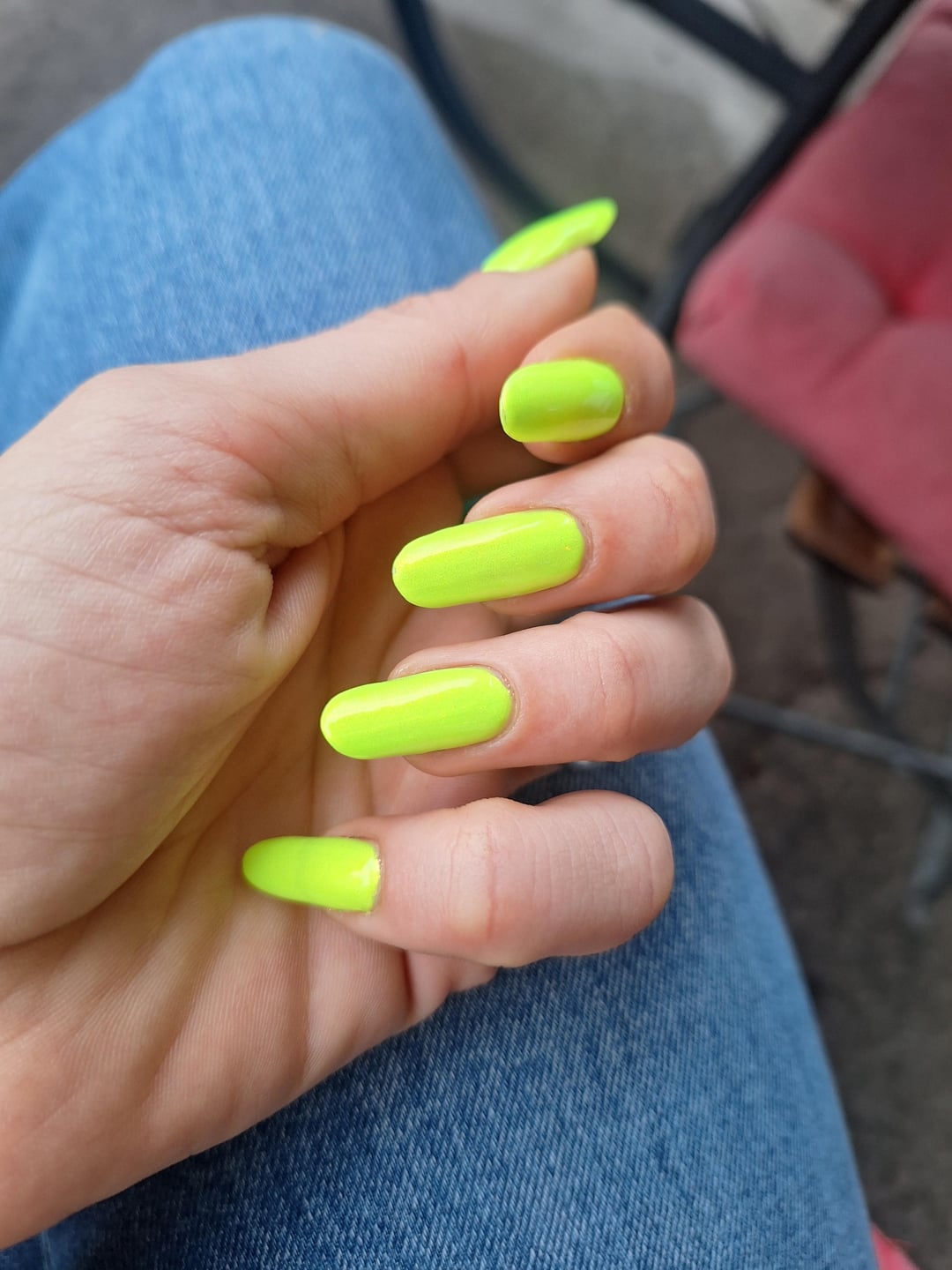 What a bright neon highlighter green/yellow! Perfect for gray foggy days to add a pop of color 💛💚