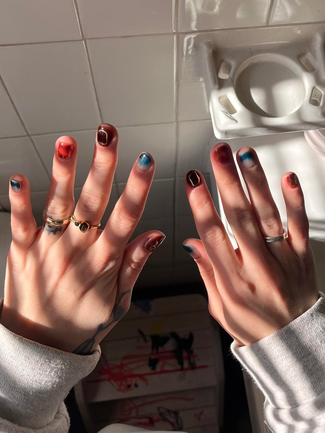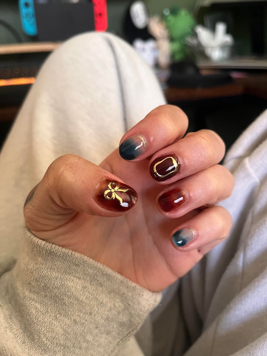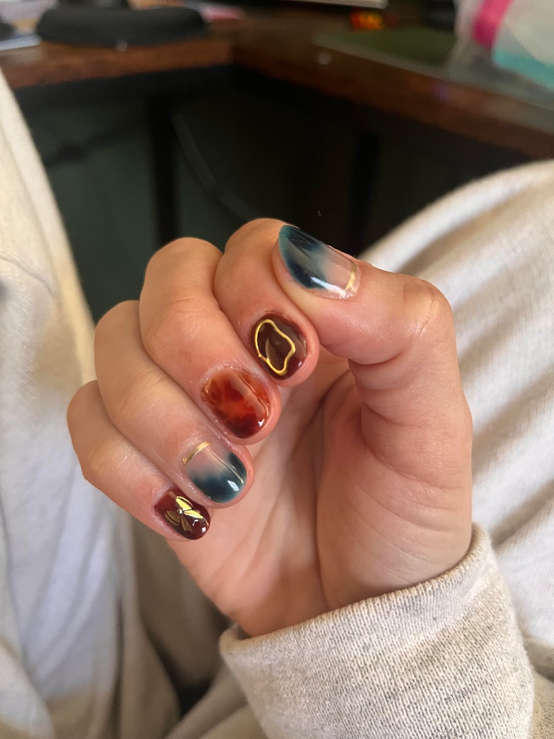 Getting the hang of blooming gel a little better. I use modelones and beetles brand for gel polish. I got the gold stickers off Amazon. by moodytofutti