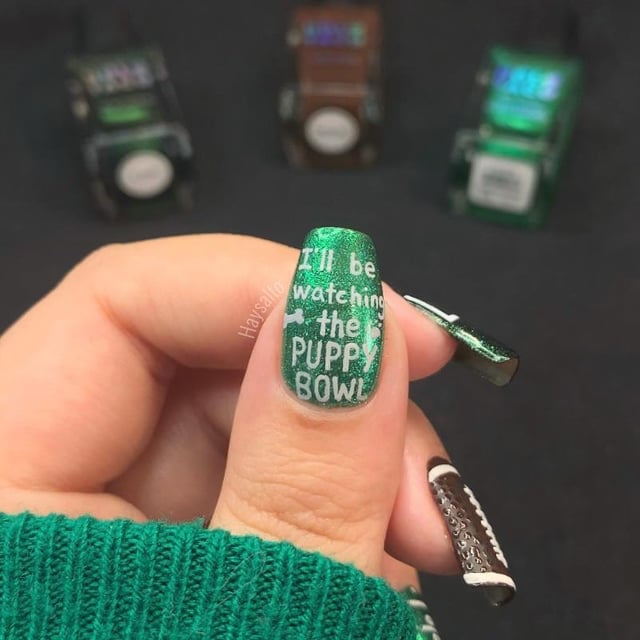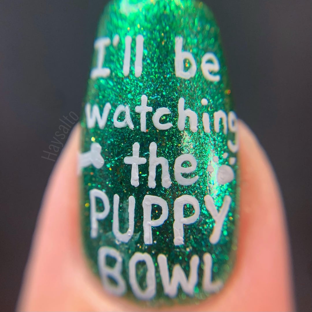 I love The Puppy Bowl!!! It is so adorable and features tons and tons of shelter pups playing and just being so stinking cute for 3 hours of tv. I wanted to do these silly nails in honor of the big game and The Puppy Bowl! 🫶🏼 My only gripe was that they got rid of the kitty halftime show this year?!? Instead they showed older shelter pups playing on the Puppy Bowl “field”, which was heartwarming to see, but I missed seeing the adorable kitties rocking out! 💔