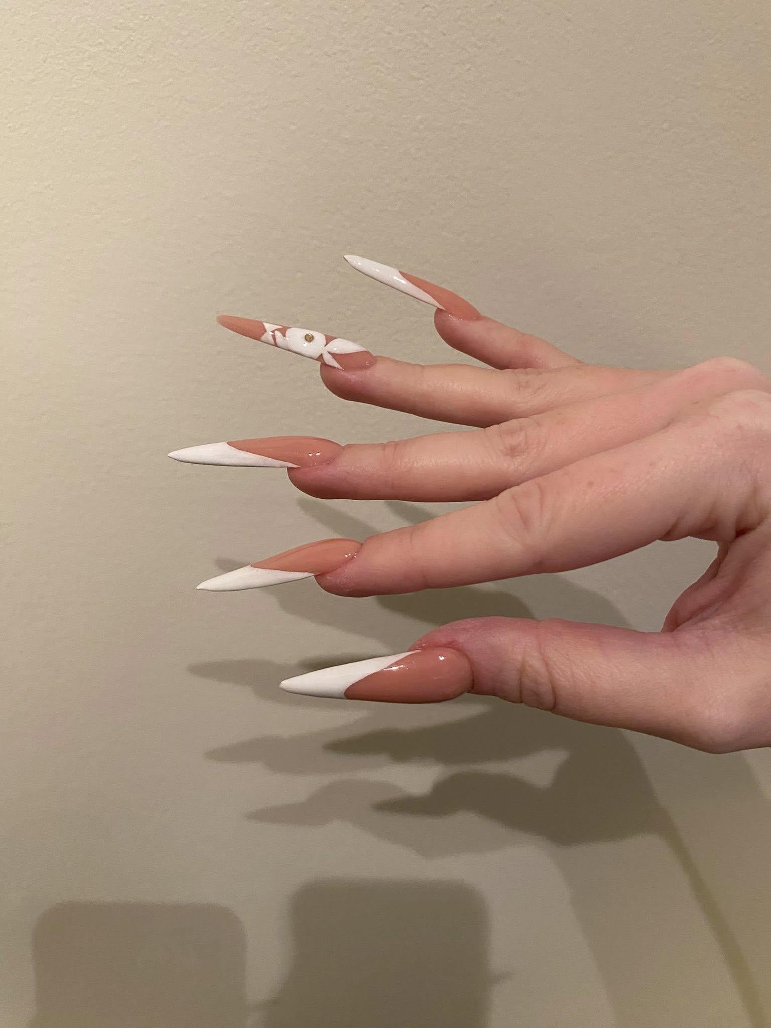 Absolutely in love with these new stiletto nails! What do you think of this modern French tip look? by Resident-Still4485