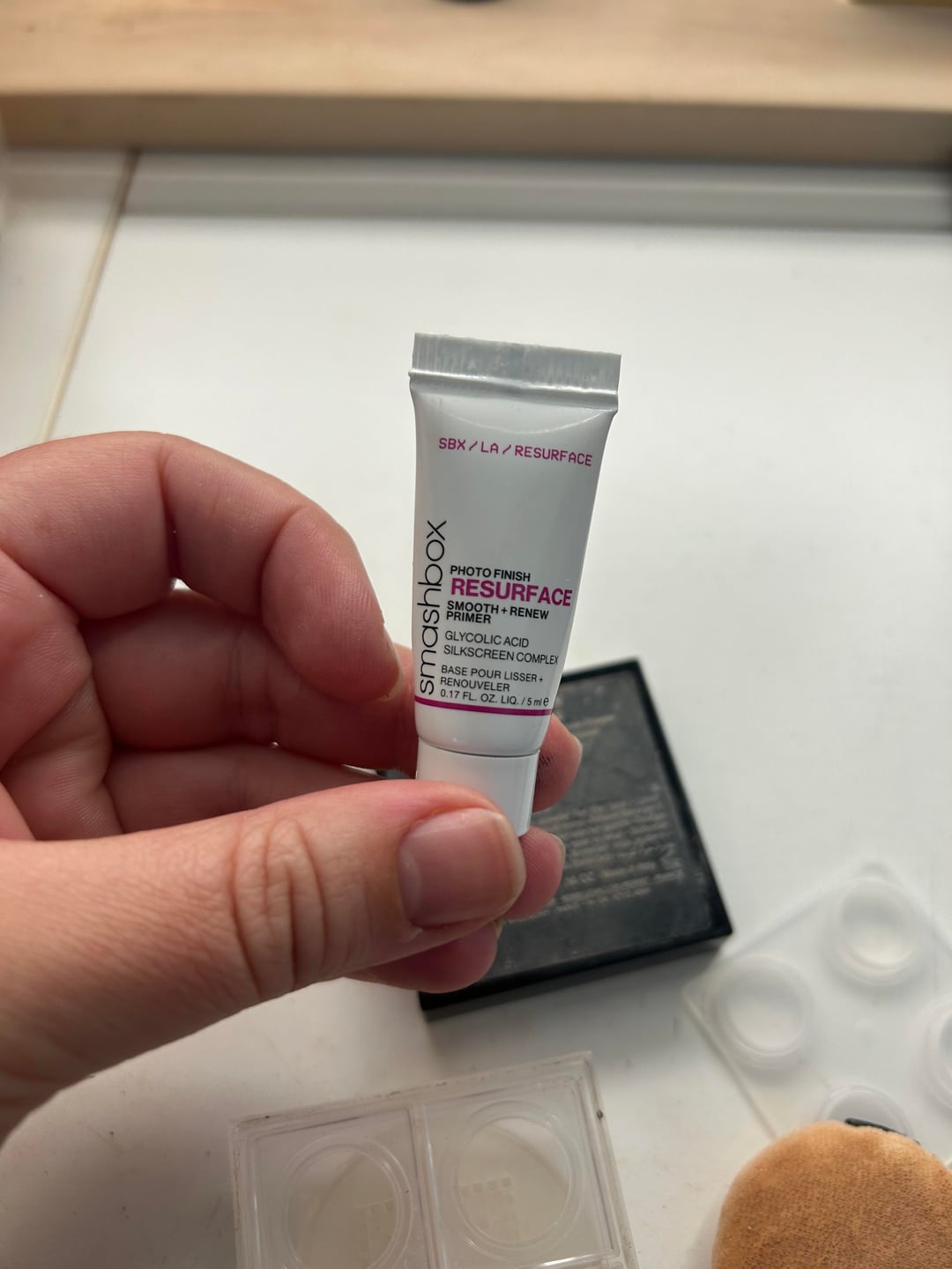 My other empty is the smashbox photo finish resurface primer. This was a mini I got from Sephora and I liked it. However I have a full size hourglass mineral veil to go through still.