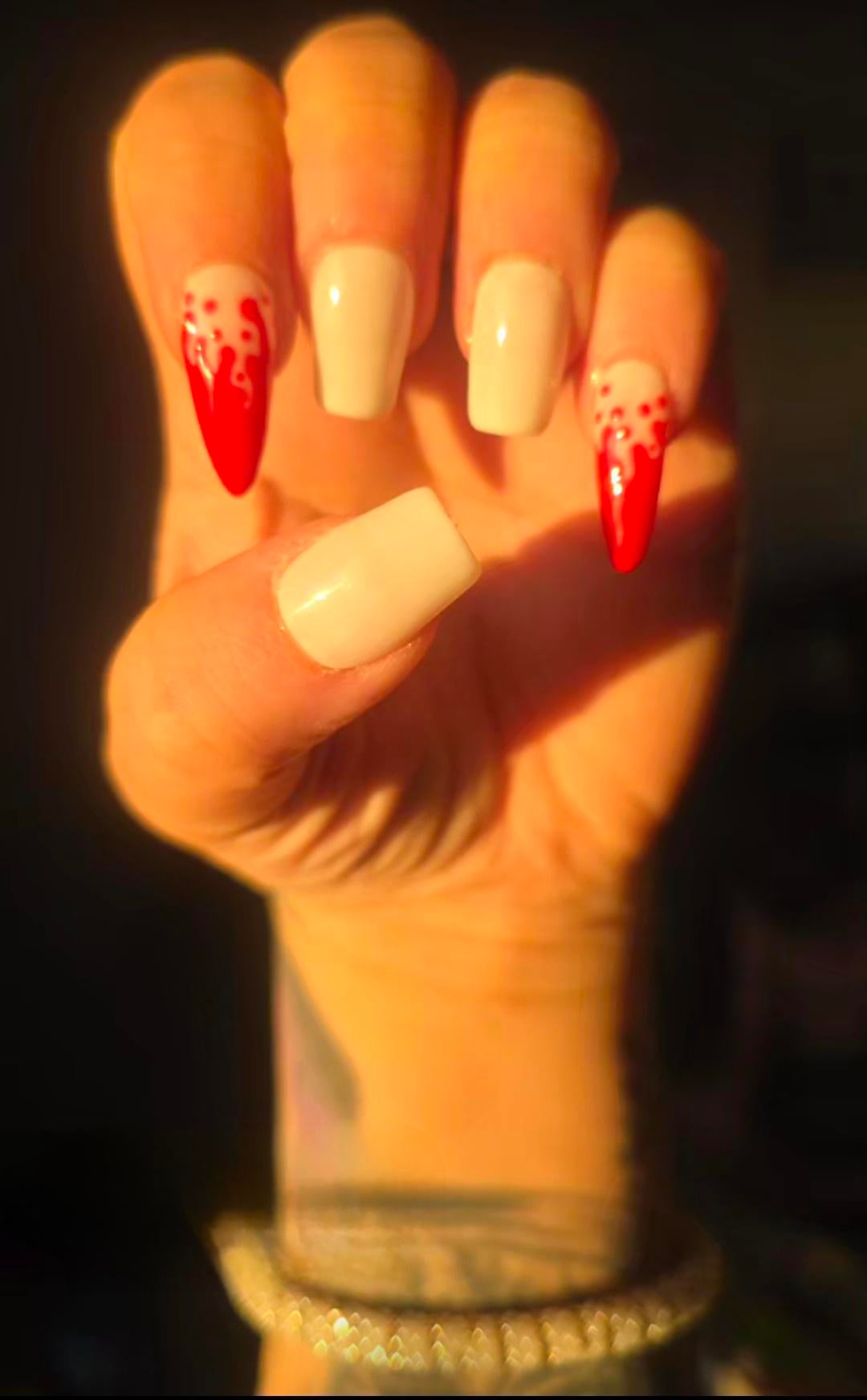 Tried to recreate the third pic with pastel polishes and a pearl effect nail powder rubbed in. I did three coats of the powder. Why is mine more vibrant and less pearly? Should I have done only one coat of the Polish?
