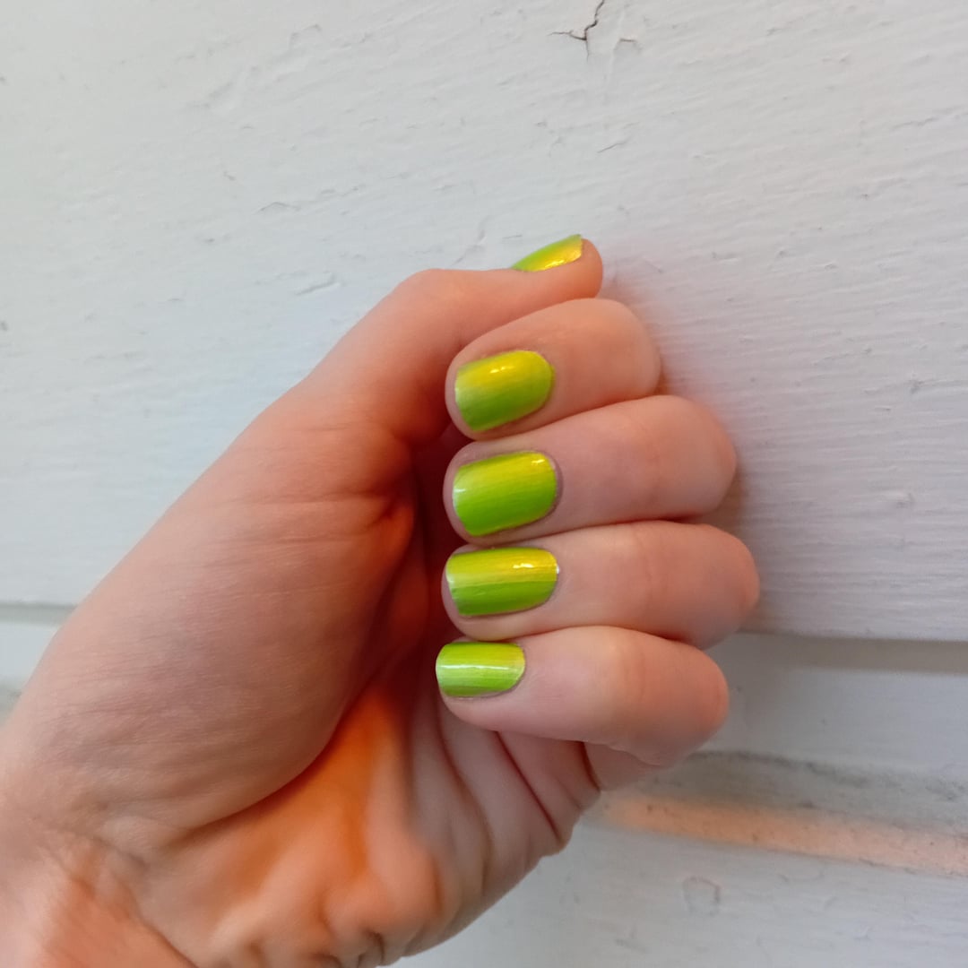 It's an amazing shade that looks almost like a soft spring green in low lighting, but becomes eye-searing as soon as you step outside. Versatile and beautiful!