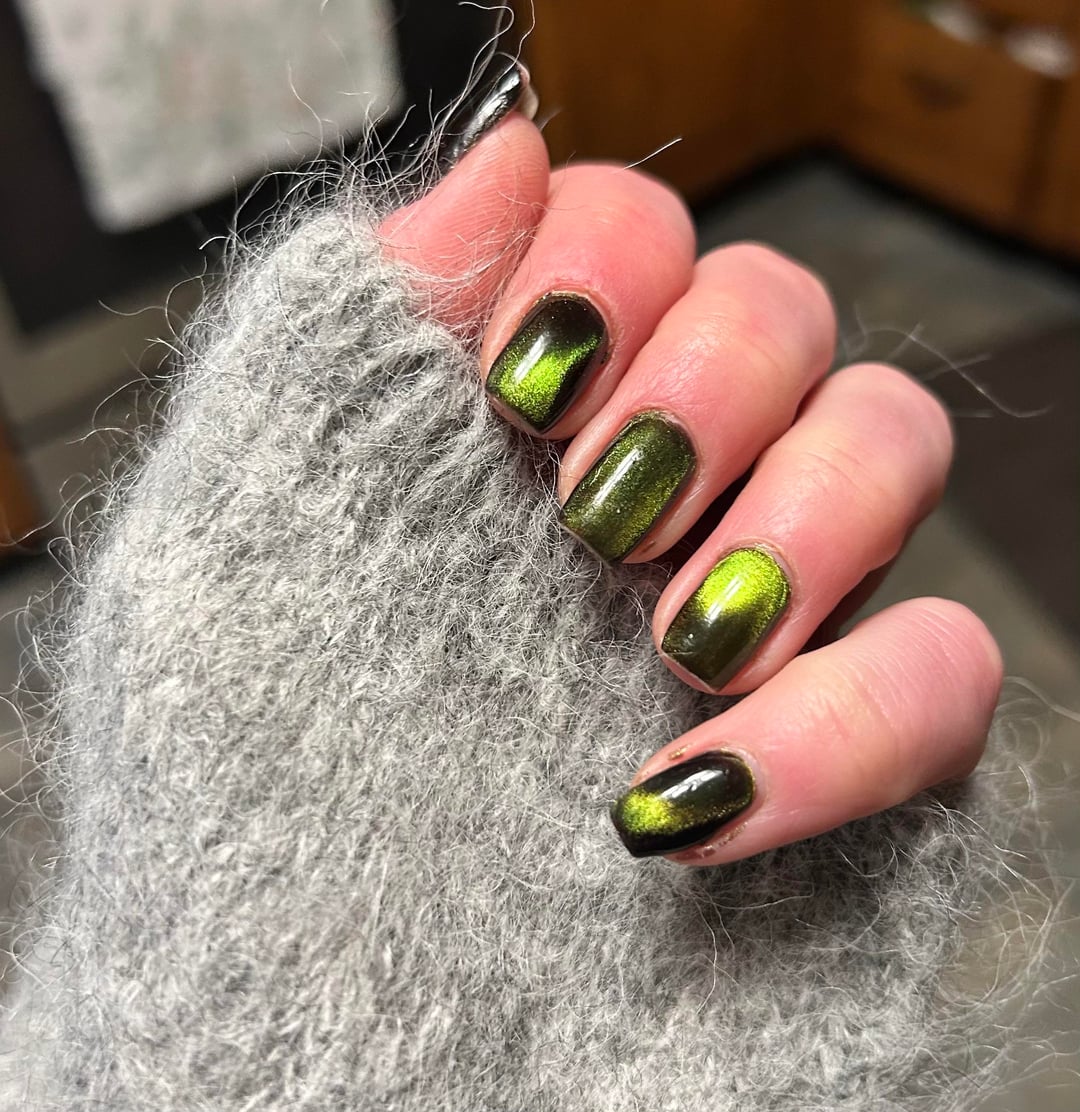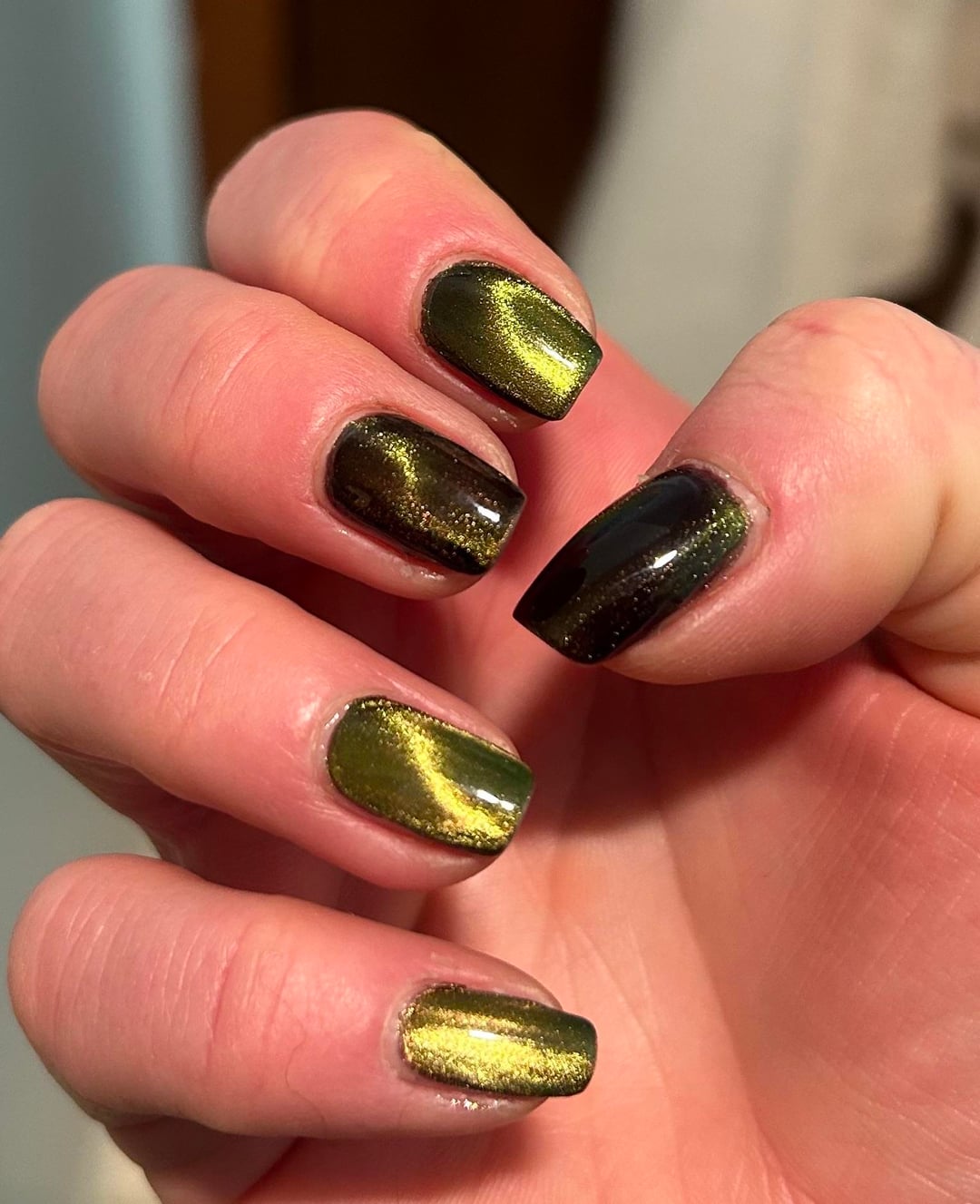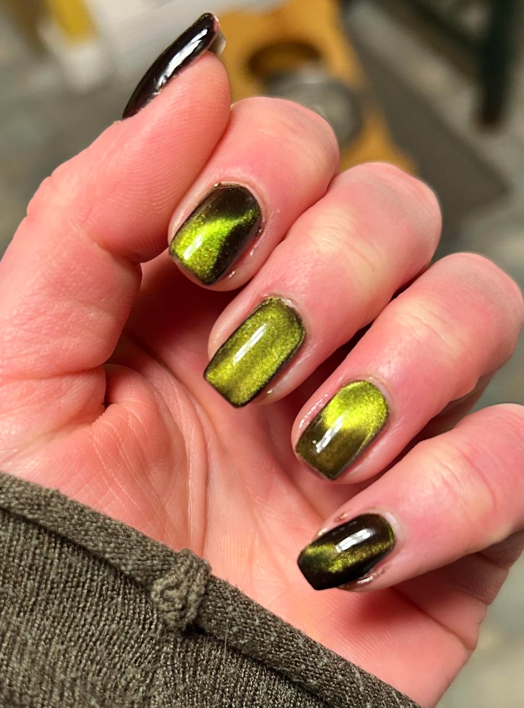I've also never done a manicure with different magnetic styles on one hand, and this polish made it super easy, but the lightning bolt shape cat eye I had dispersed very quickly.