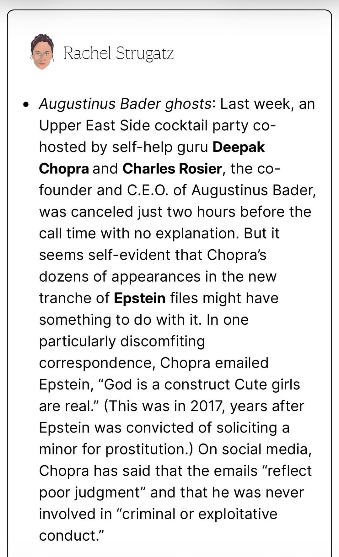 I was perusing just a snippet of Deepak’s emails in the files and it’s so fucking gross and sickening. Especially for what he supposedly stands for.