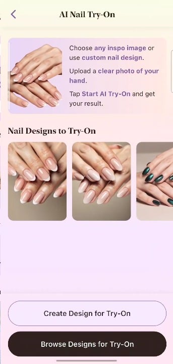 Our latest update lets you upload your own hand photo and preview nail designs on it.