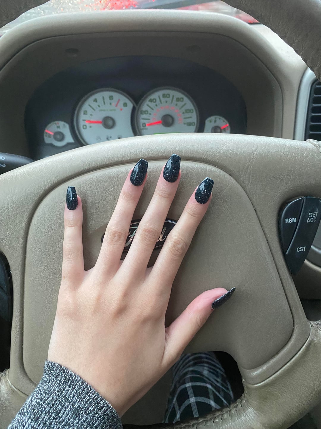 So imma be honest and says those do not look like coffin shape at all lol those are square. Your nail tech needs to shape the nails much better, they should be much skinnier on the sides, the top part should be smaller and more filed. I think round would look great on you! Or a pointy almond (just make sure they arent done on short nails or they look funny, again its aññ subjective). You have great fingers! Long and elegant are most womens dreams, i would honestly flaunt it if i was you but i get it💕