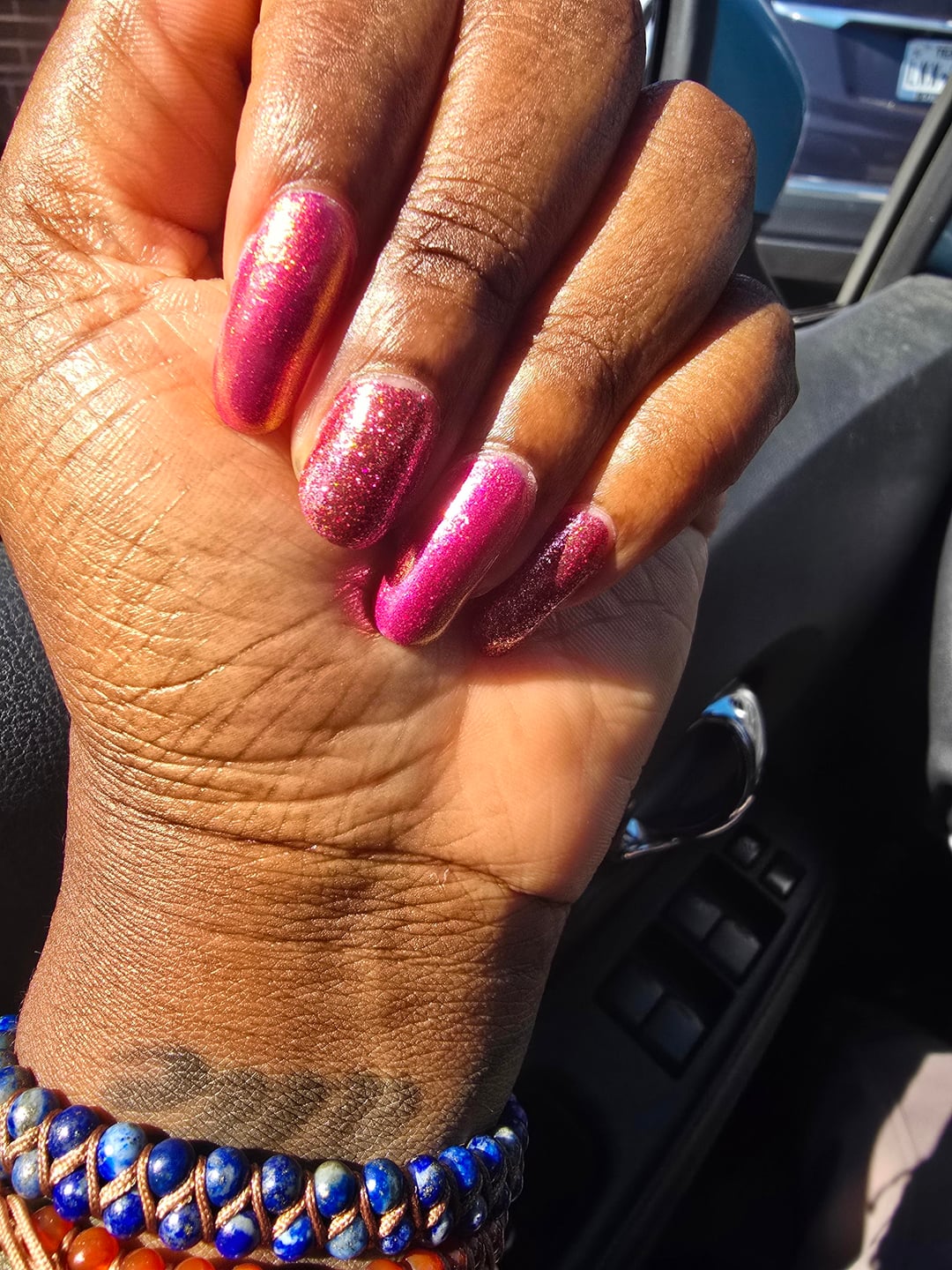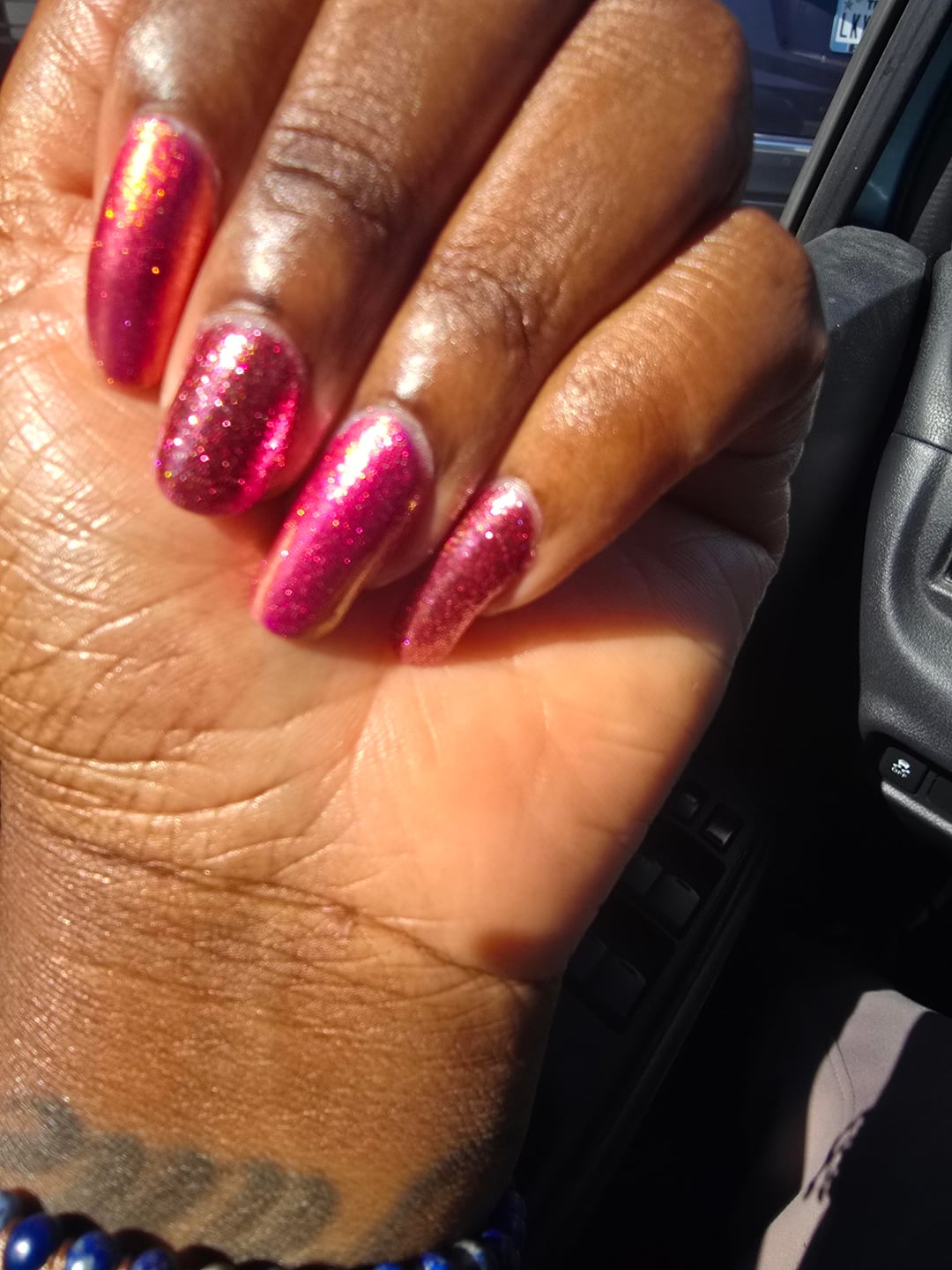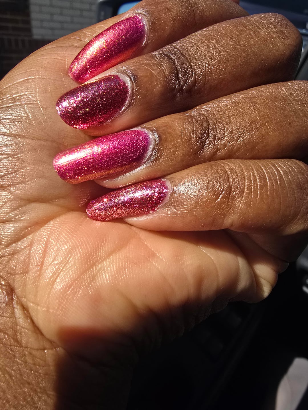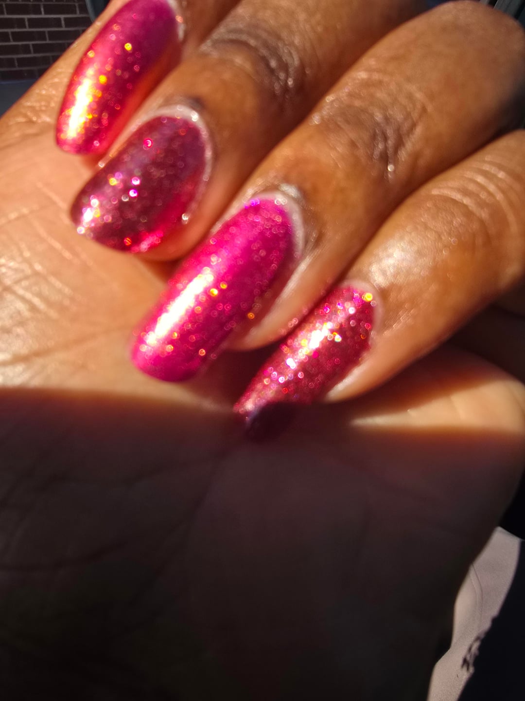 I had a hard time capturing the twinkle with the mani. I tried alot. It was just so sparkly and juicy.