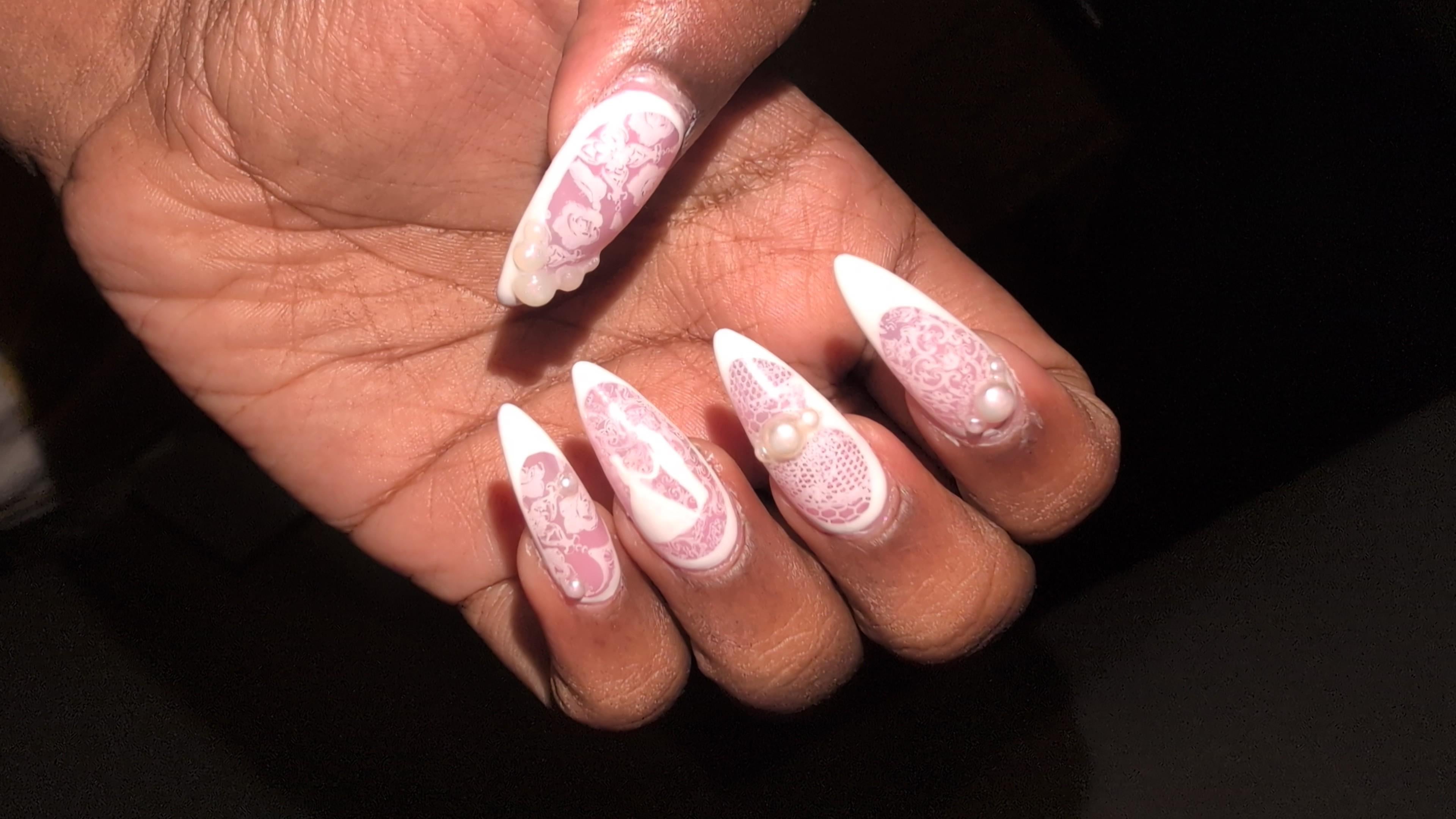 I was going for a lace and pearl design. Used beetles gel polishes and stamping gel polish for the lace. On gelx nail tipss.