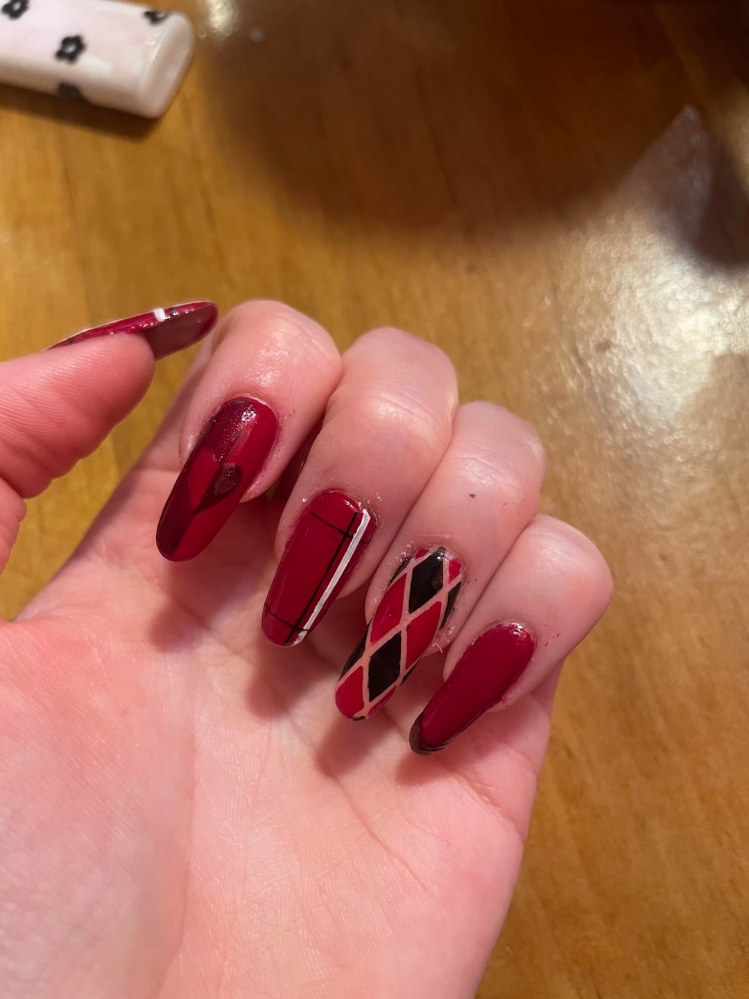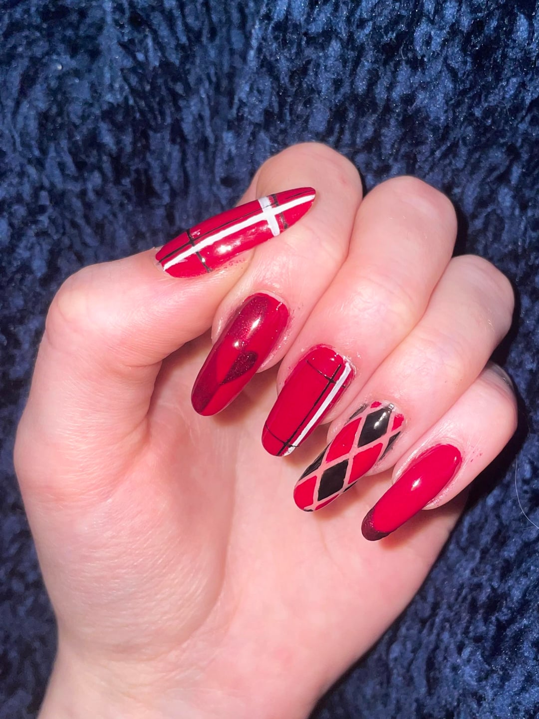 These nails are meant to coincide with a Galentines party my friend invited me to, the plaid matches my dress and everything! What do yall think? by I_wet_my_plants259