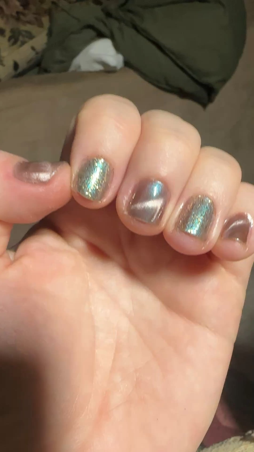 Long time lurker, first time visual poster! Slowly healing my cuticles and nail beds, fiddling with magnets and sparkles and wondering how y’all are sooo good at this!