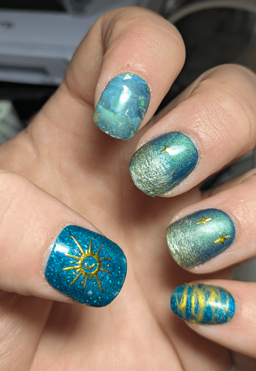 Custom press-ons. I'm still learning, so they are far from perfect. I didn't know if I wanted square or round and it shows. by heleanahandbasket