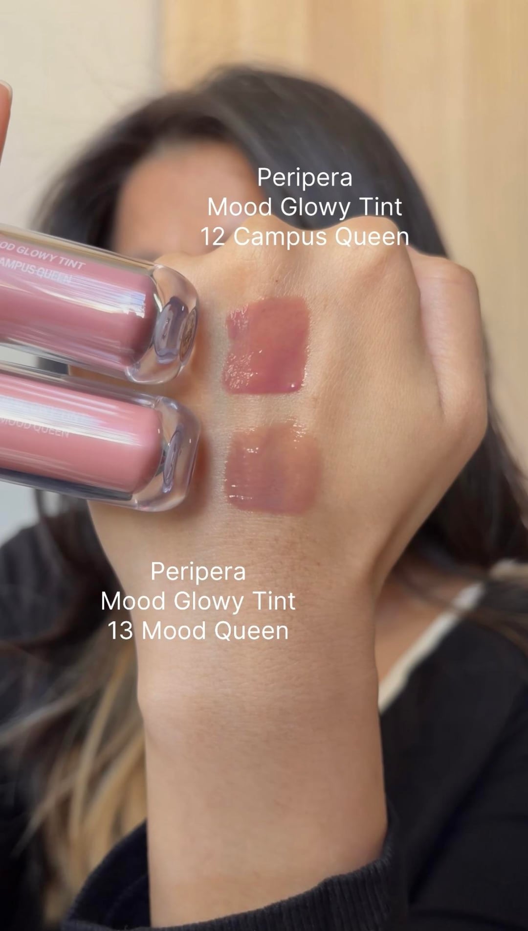 Hey y’all, today I compared Peripera Mood Glowy Tints in 12 Campus Queen and 13 Mood Queen.