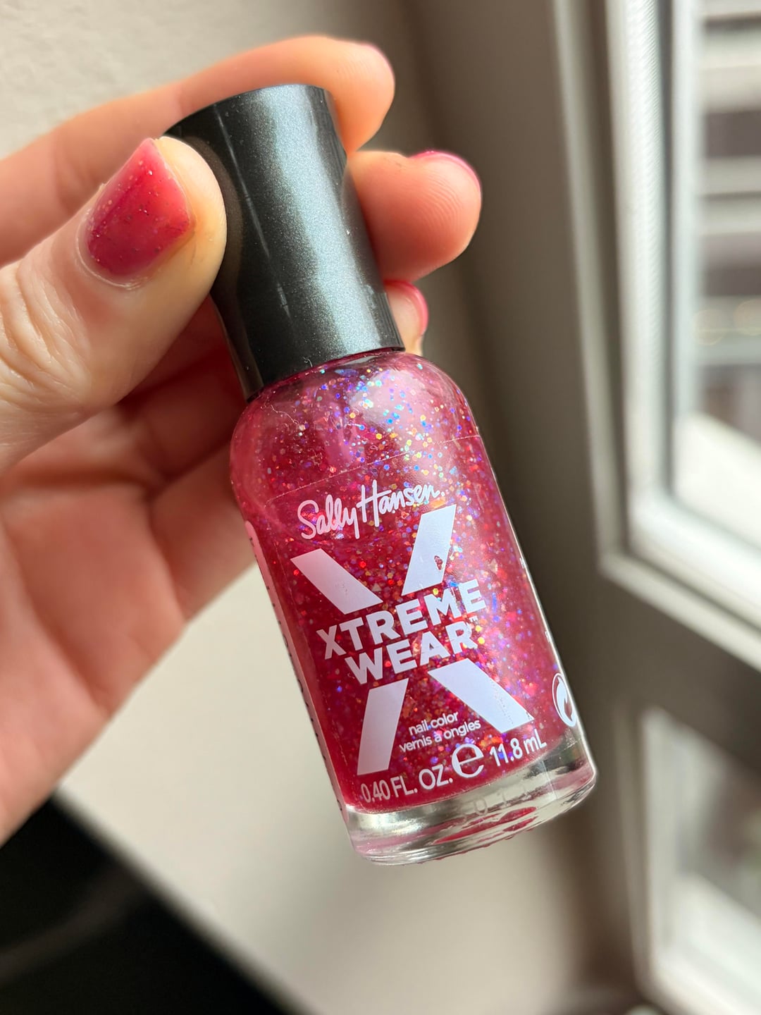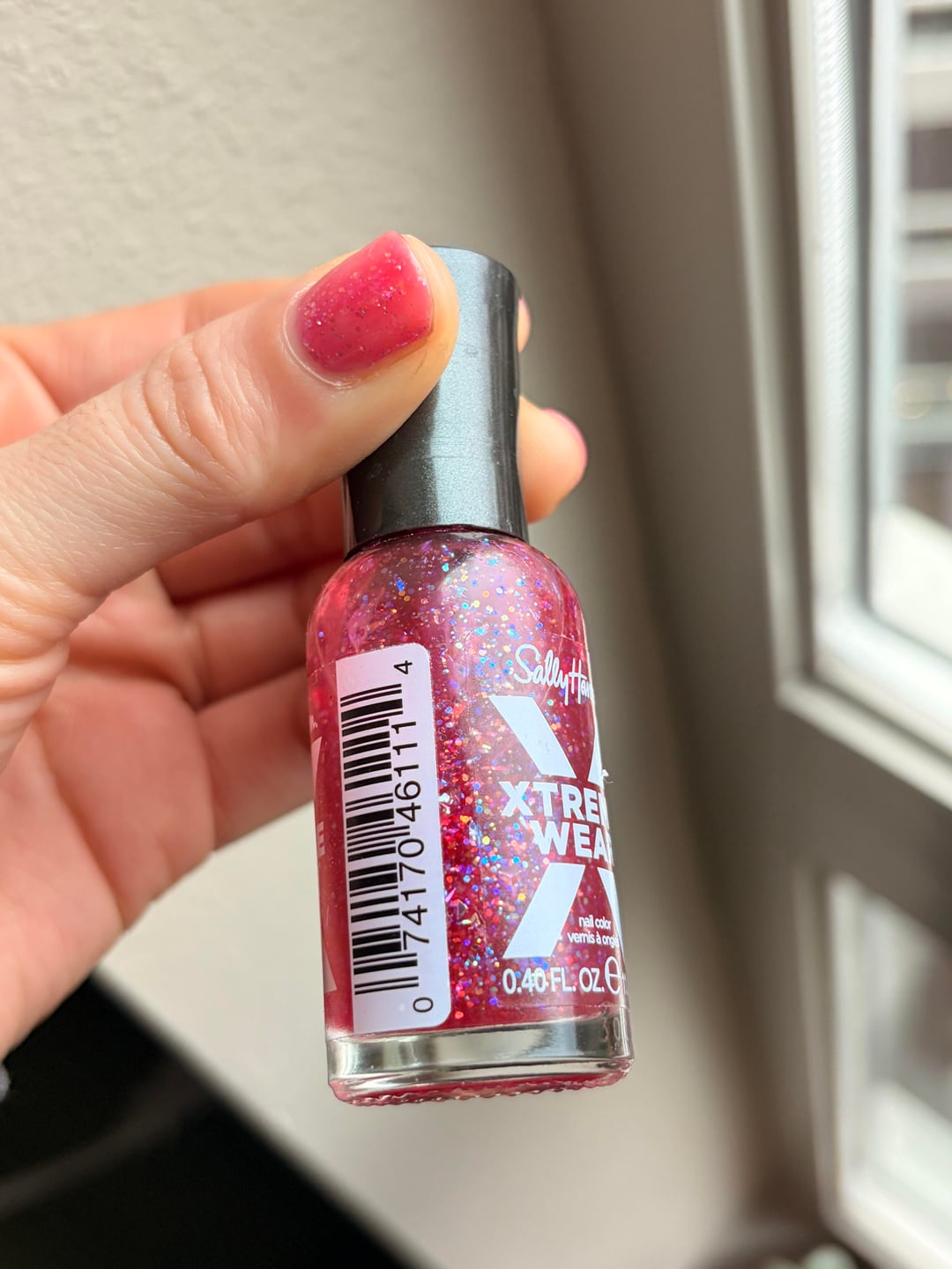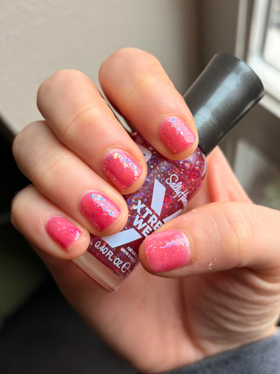 using Sally Hansen Xtreme Wear in the shade Heart of Sass 🩷 i love a good glittery jelly 🥰
