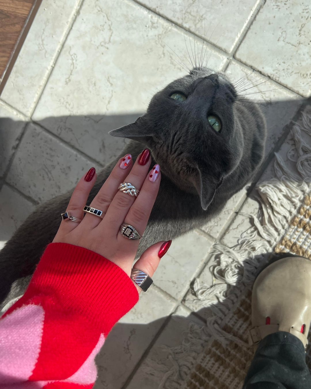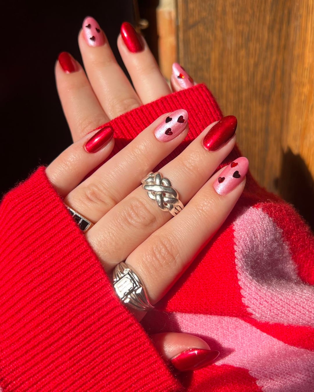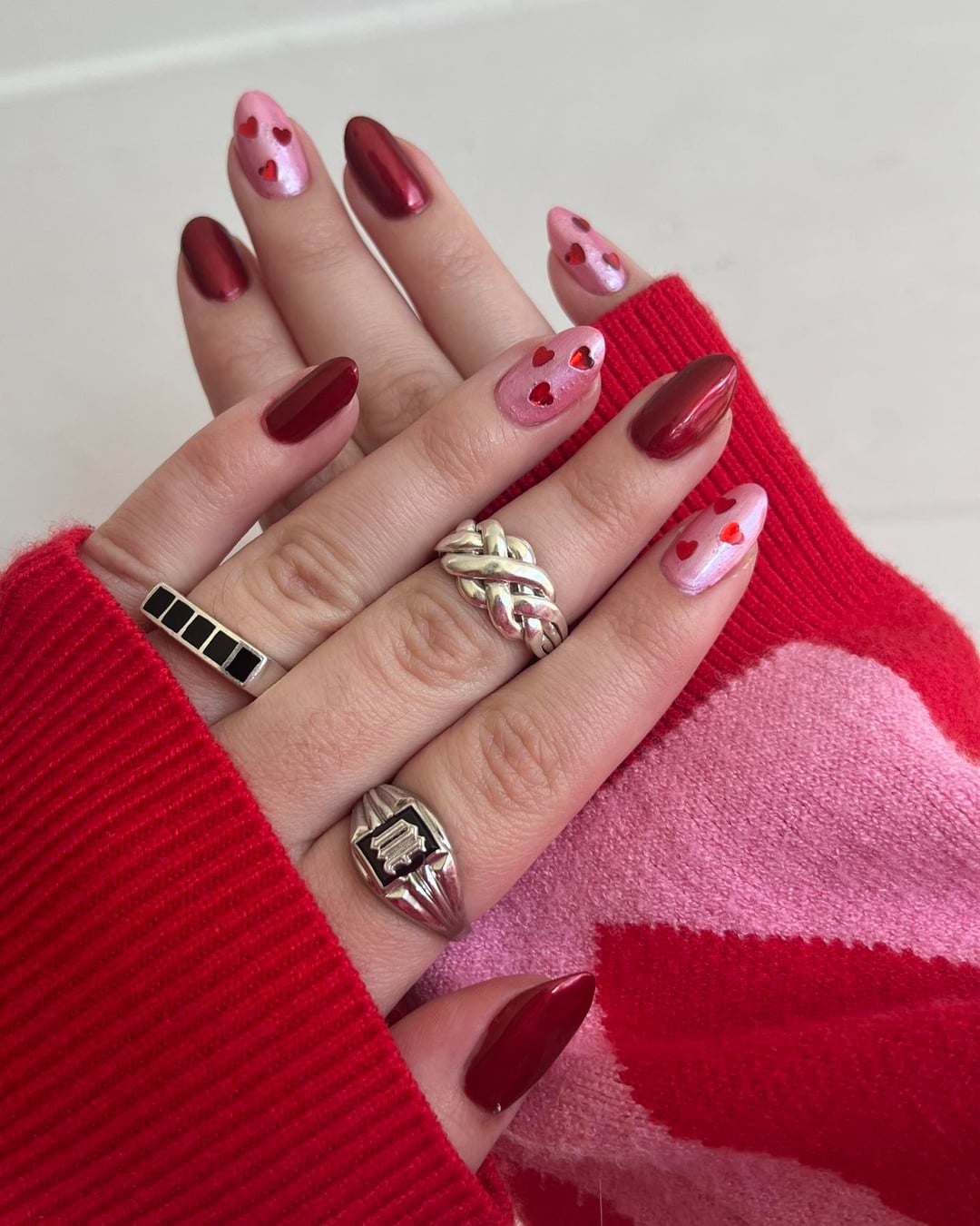 My Valentine’s Day look brought to you by Amazon heart glitter and the Red and Pink GOAT: Cracked Polish !!