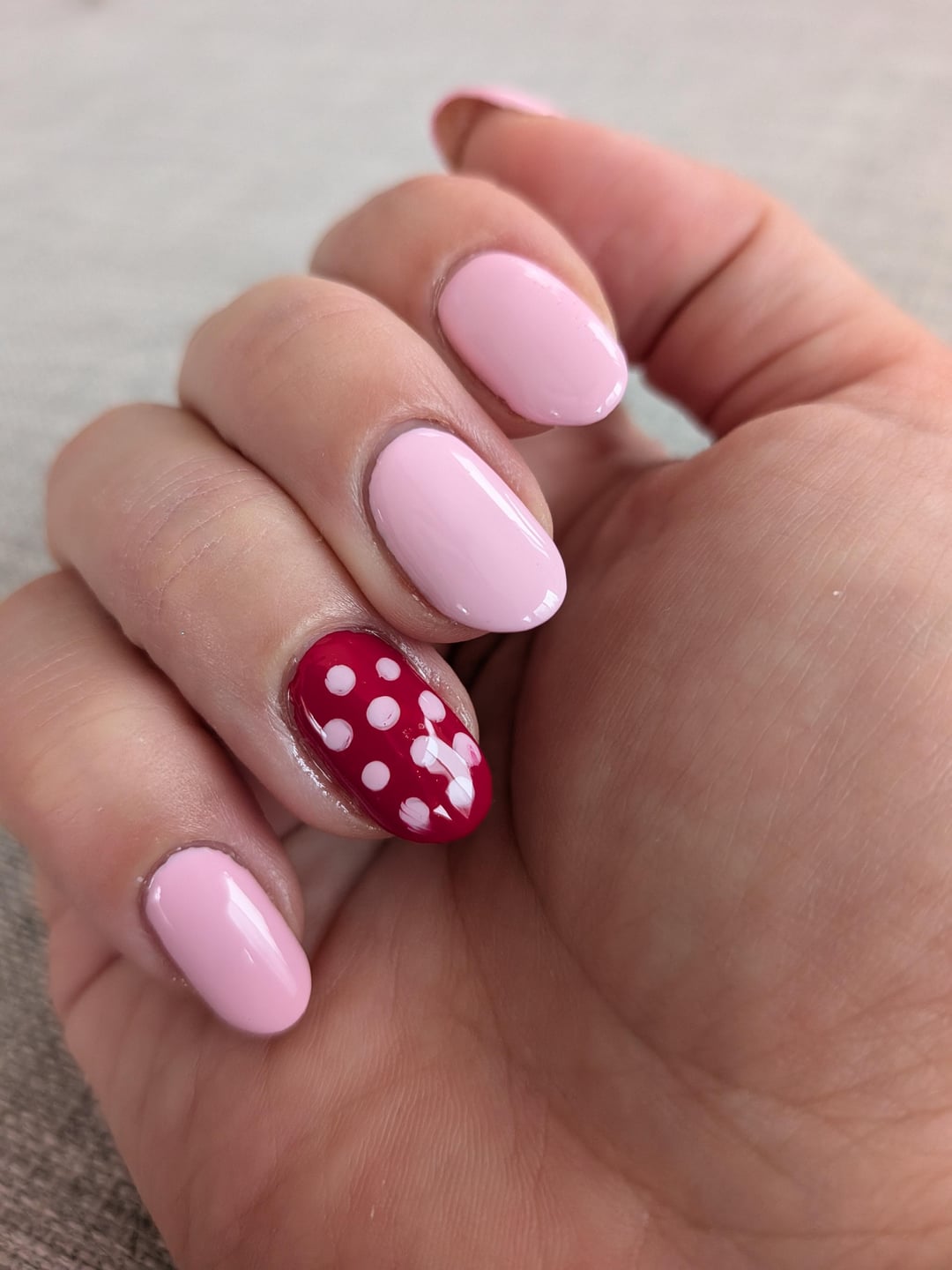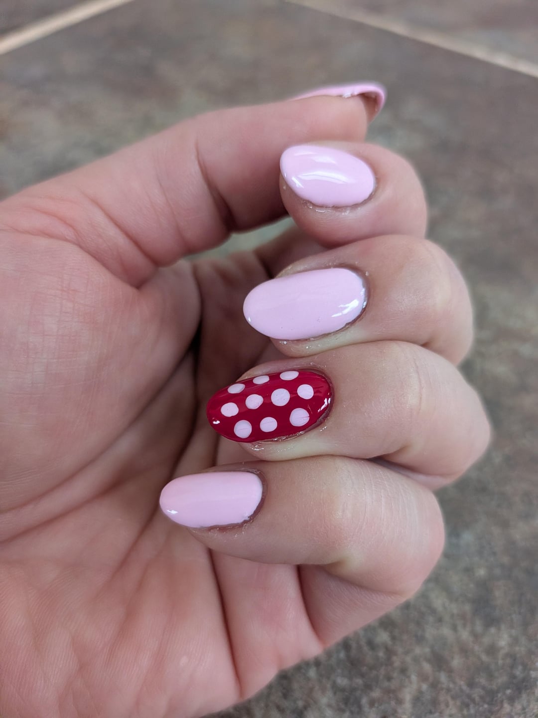 I don't have a dotting tool so I used the rounded end of a toothpick. The polka dots ended up bigger than I wanted but I'm overall happy with how they turned out! It was very stressful though, especially when I tried to topcoat it and realized the colors were bleeding. I'm not sure I'll be regularly doing nail art but I'm glad I tried it!