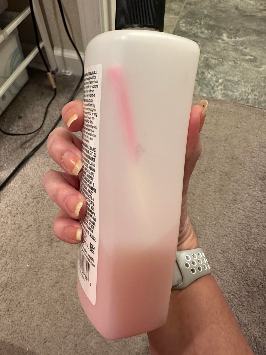 Why yes, I did drop an entire nail brush into my acetone while painting my daughter’s toes, and yes it did start immediately dissolving and turned the whole bottle pink before I had a chance to rescue it. Good thing I have to run to the store tomorrow anyway! (And yes, I normally pour acetone into the cap and dip my cleanup brush into that, but I just needed a tiny bit and here we are.)