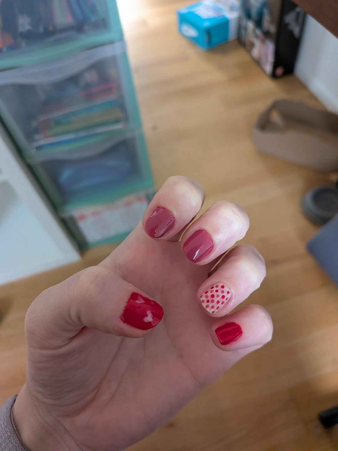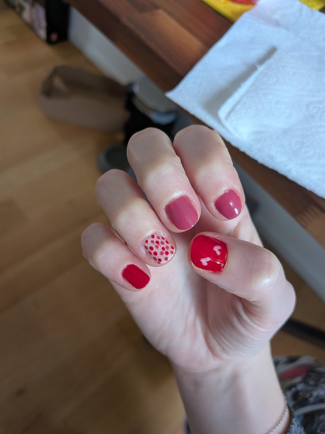 sadly smudged the ring fingers a tiny bit but I've never done any kind of nail art before and I think they're cute by SnowCone1014