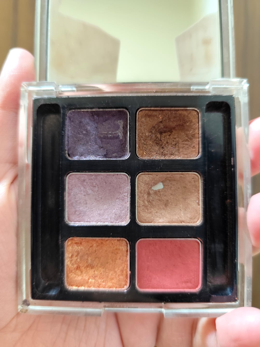 Finally hit pan on the brown shadow in my really old Shu Uemura x Karl Lagerfeld Prestigious Bordeux palette! I already have a massive dent on the dark purple shade so I'm glad the other shades are finally catching up.