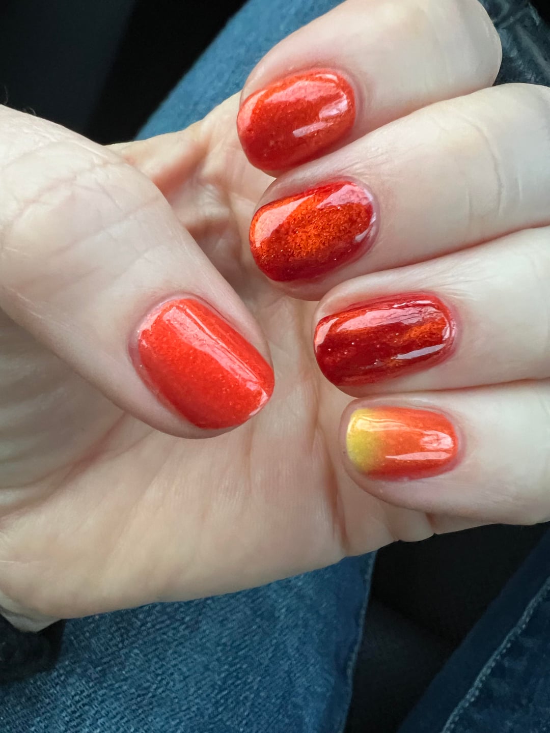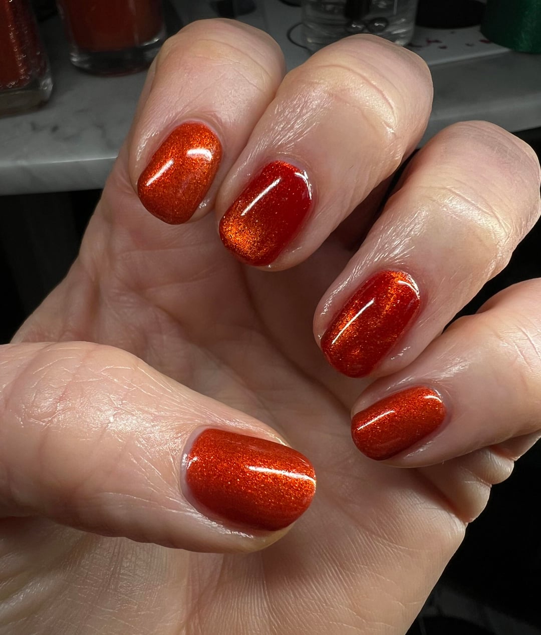 I tried to capture the my nails in different lighting and during color transition. Hope this fire horse year brings all of you luck and nails that are are always on fire 🔥