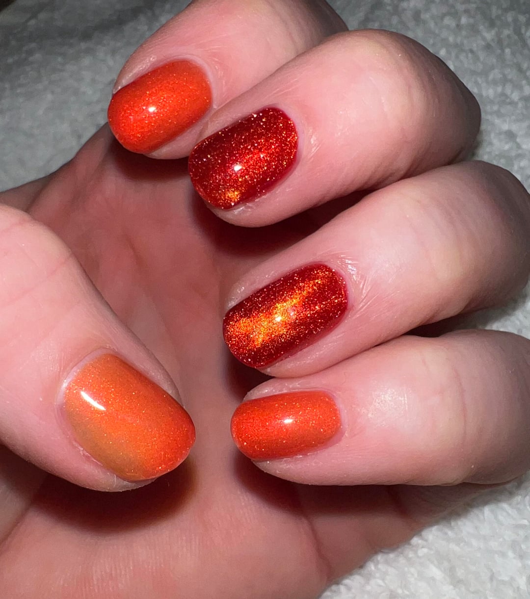 I tried to capture the my nails in different lighting and during color transition. Hope this fire horse year brings all of you luck and nails that are are always on fire 🔥