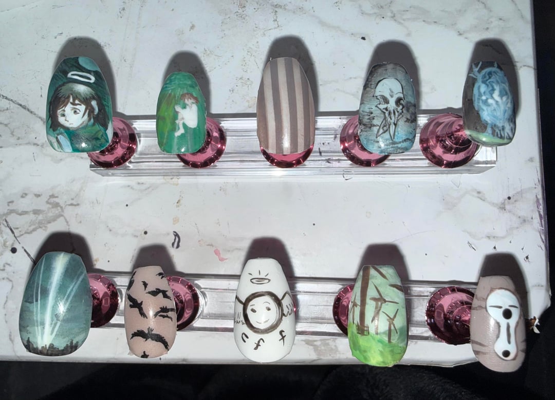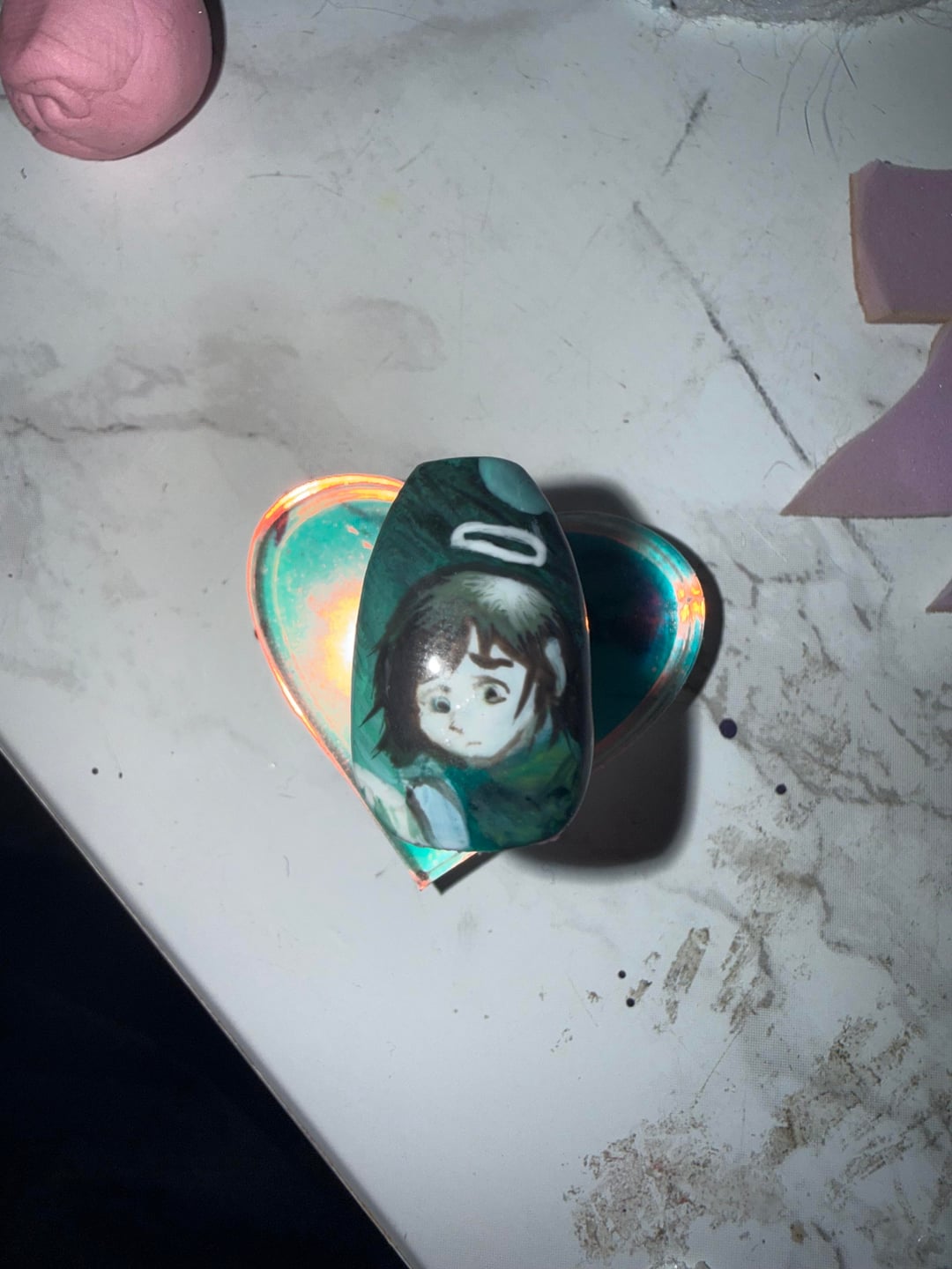 Based on the anime Haibane Renmei for my boyfriend! Literally the fourth set of nails I’ve ever painted so I feel like I did pretty good! Really proud of them 🩷🩷 by Vampire_Gyaru
