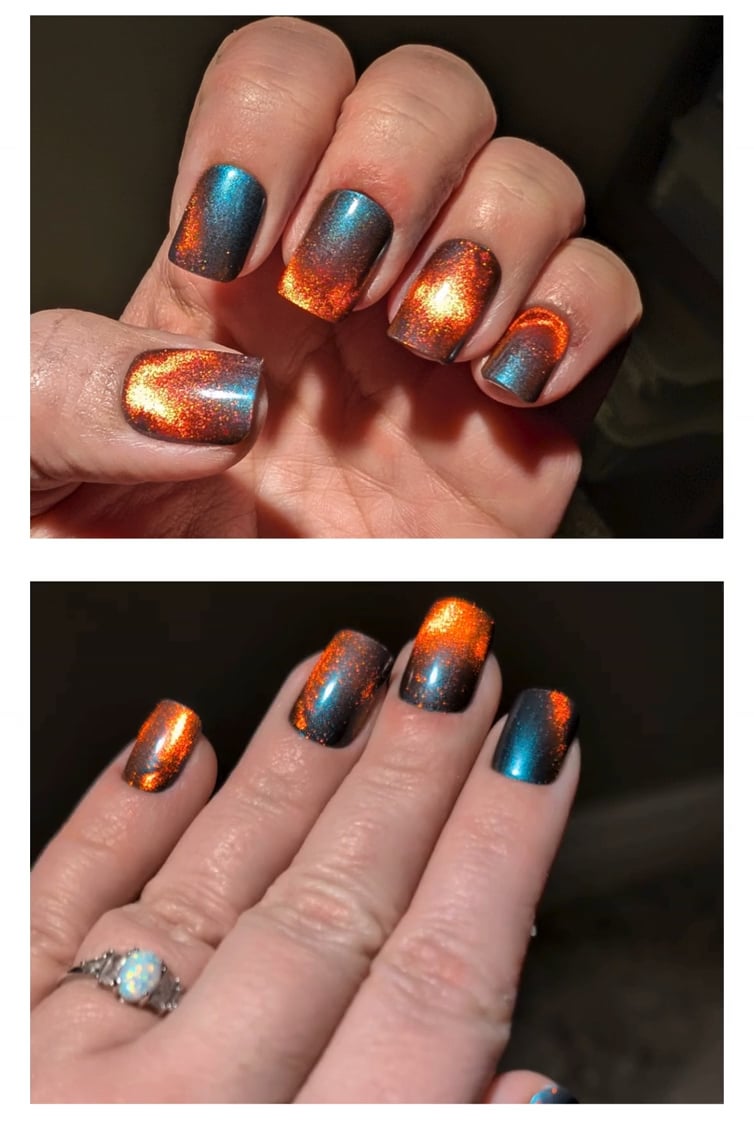 That looks magical! Like you’ve captured red hot coal on your nails. Fabulous