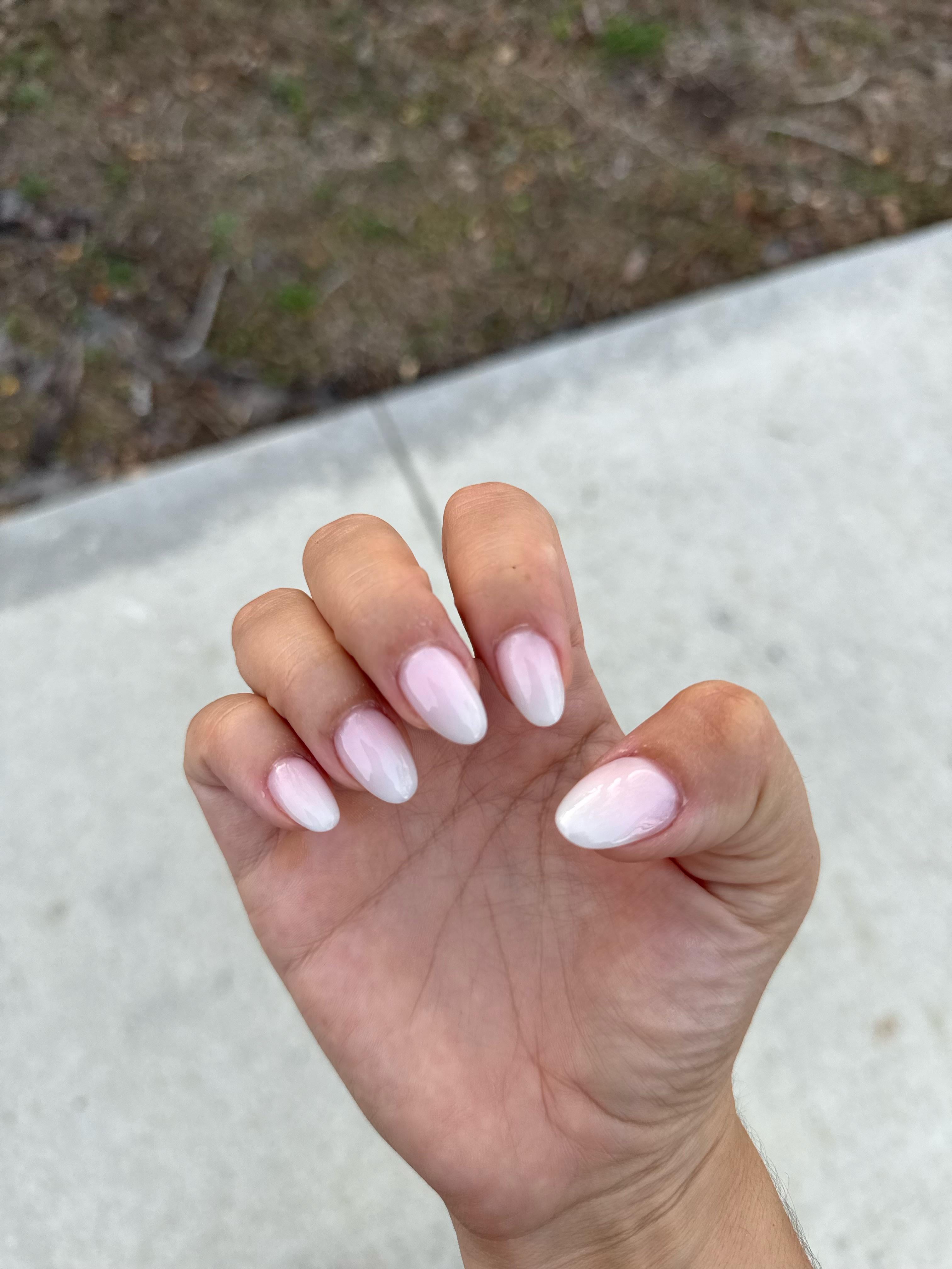 You should try French tip with funny bunny, that’s my go to 🙂 ombré is not it, and go to a Russian manicurist if you can cause your nails are super thicc & they’ll have your cuticles looking fab (not my picture)