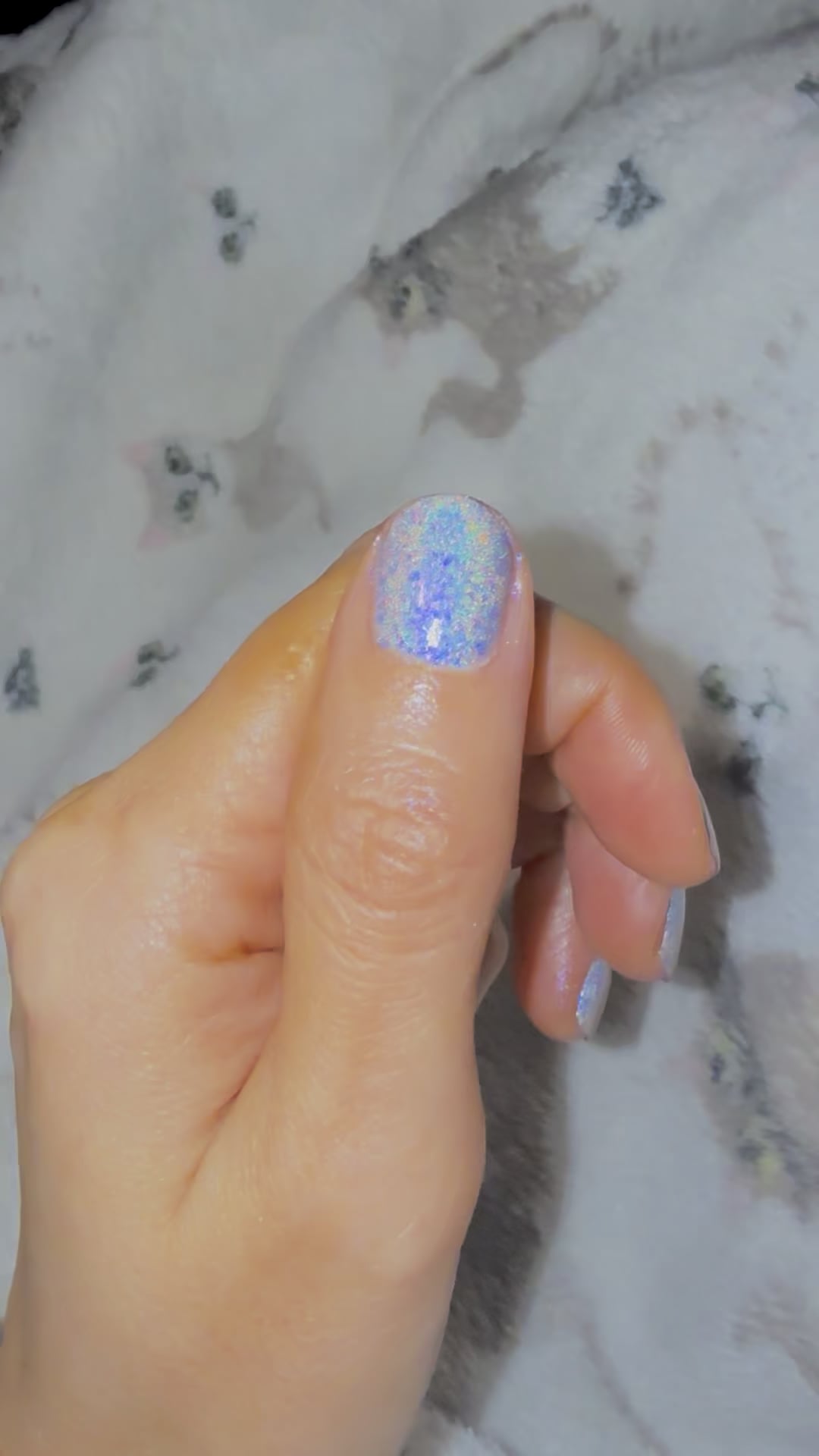 Starrily Pulsar. It’s a micro mini linear holographic with like an iridescent blue/pink/purple shimmer to it. It didn’t film the best but it’s pretty. Cracked ridge filler base and Seche Vite top coat (not my fav but I had shit to get done today). I think Starrily overtook Mooncat as my favorite. I just wish they restocked more.
