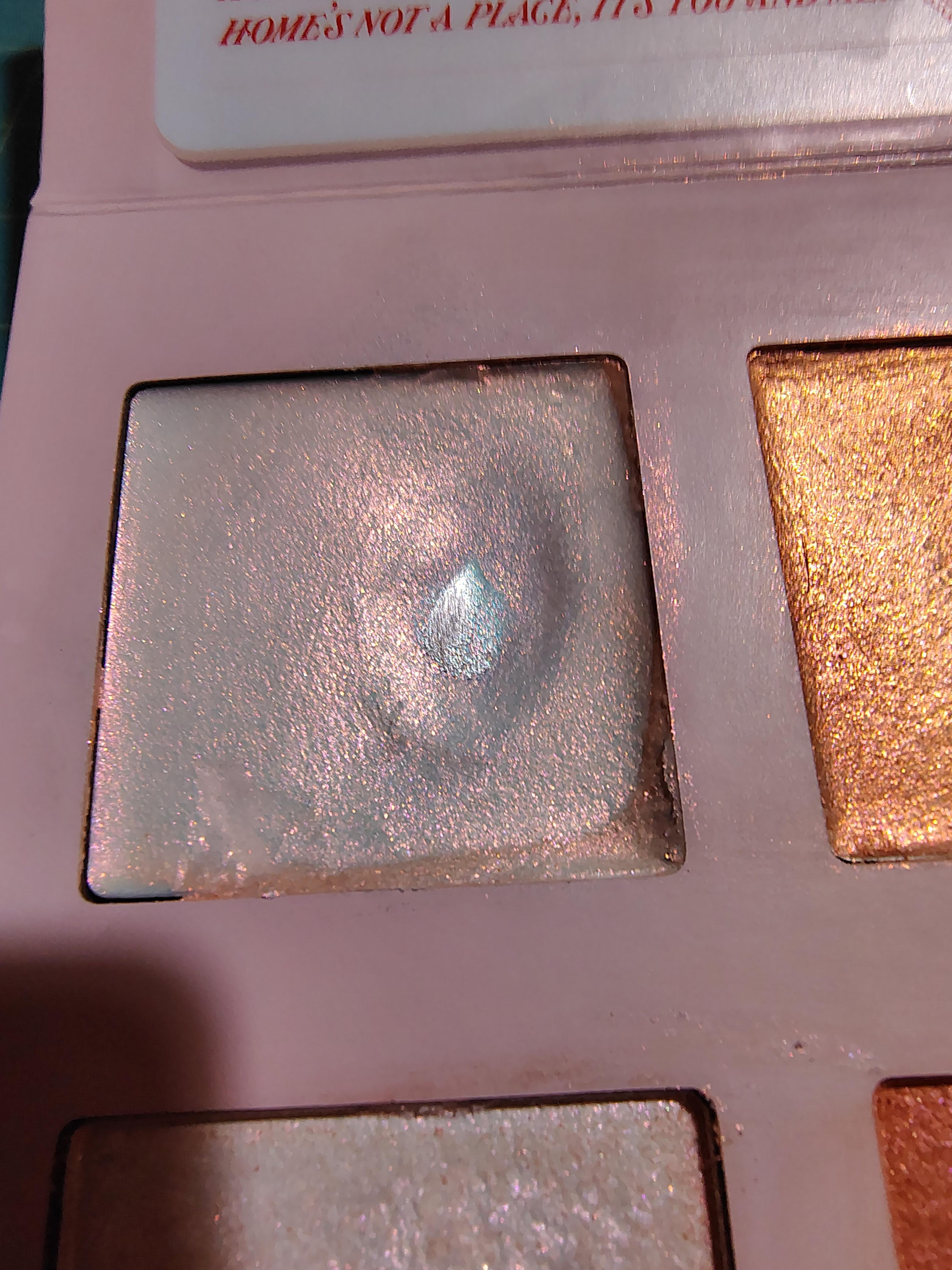 Anyways, I was trying to clean up this messy af pallete and I stuck my finger in it because I thought I was seeing things, IT'S PAN BABY. Look at it! I thought I would never see it! First thing I've hit pan for in the whole palette! God I was so excited my whole phone and shirt is covered in glitter rn.