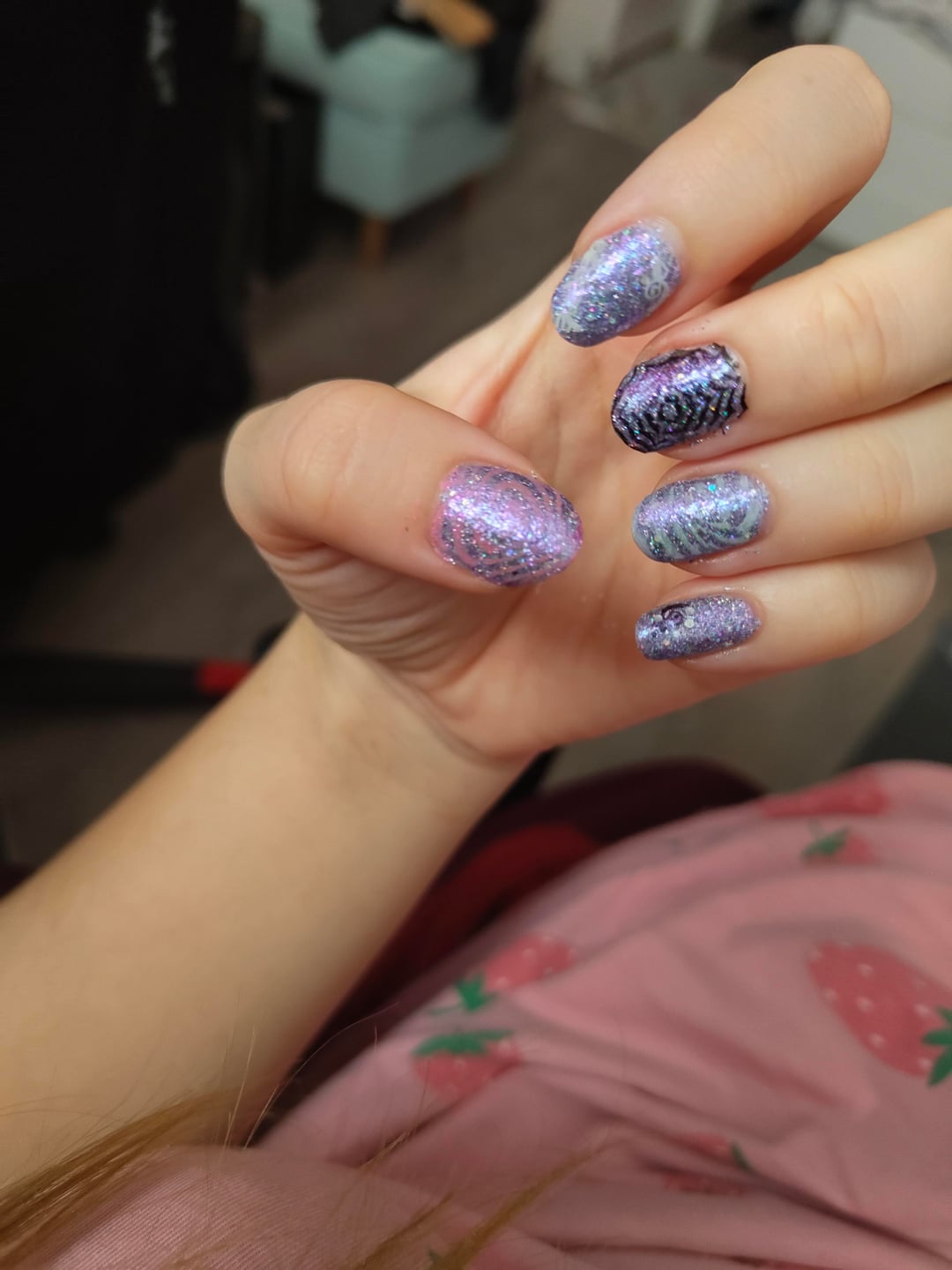polishes used: dermacol fast dry base coat, Holo Taco – Lo-Fi lavender; twilight shimmer, douglas – white sneakers, catrice – black, Essence – pink, catrice super stay gel top coat.