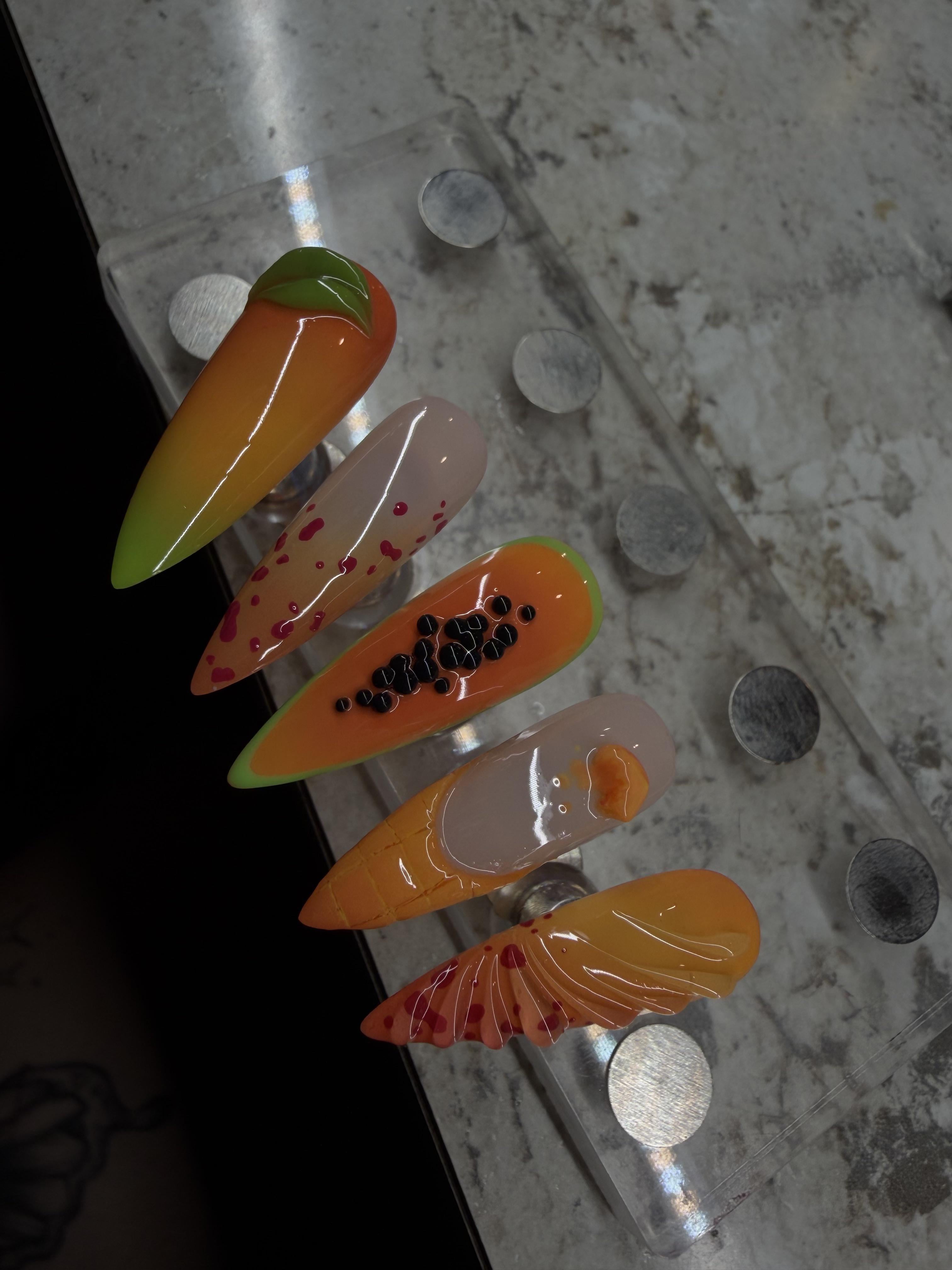 Inspo by clawgasmic on tiktok* My friend wanted me to try this design 😍😍 the original artist did a way better job lol but I’m so ready for spring and summer designsss 🥭 by cfxlr