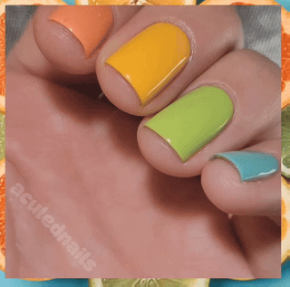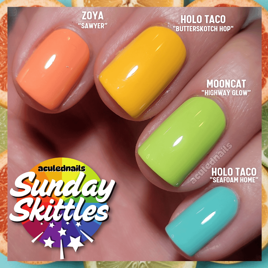 I'm sure I'm not the first person to think of this, but I've wanted to reserve some of my painting time for skittle manis. I started out doing skittles because, if you know me it will be no surprise to you that I couldn't pick just one color or polish…so why not all!? Time for "Sunday Skittles"!