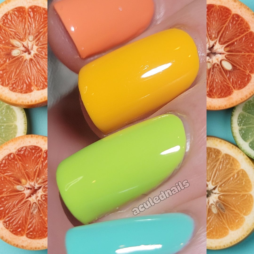 I'm craving bright and warm, which brought my mind directly to citrus. I always love a citrus gradient but enjoy pairing up a soft aqua in there as a contrast as well as the next step in the gradient. It's giving me Miami breakfast and I'm into it. I'm chaperoning a trip to Disney this weekend, so my mind must already be in Florida 😝🍊🍋🍋🟩🩵