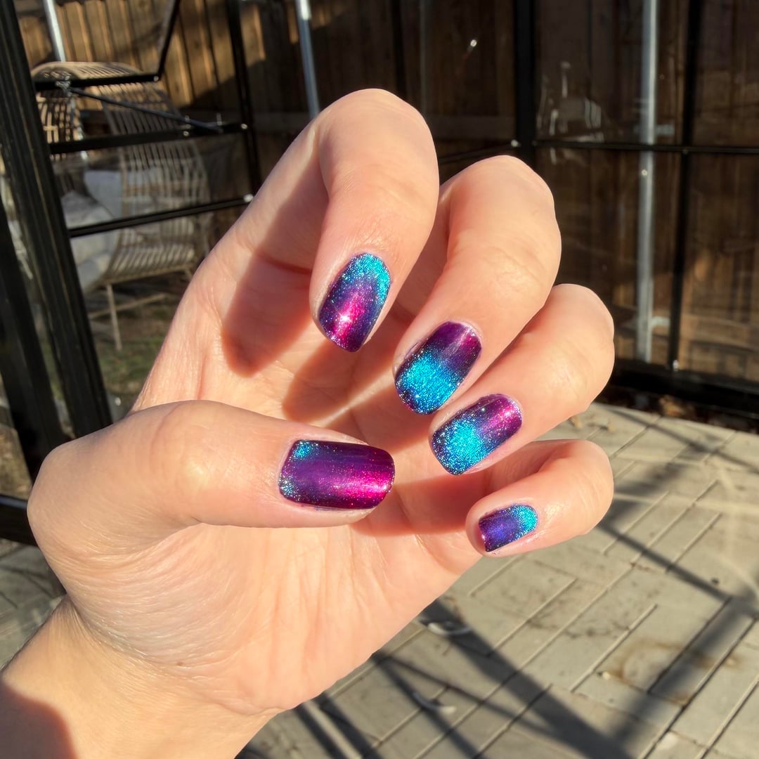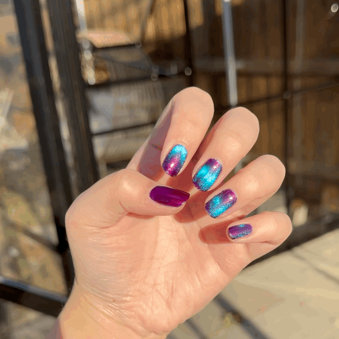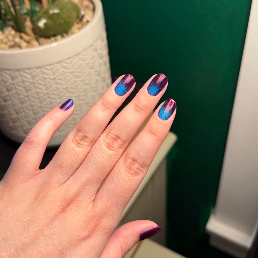 … but I don’t own an actual red polish. This is 1 coat of BKL Bad Vibes Only over 1 coat of LynB Stolen Kiss which is a very much purple/pink shifting red. Base coat is Nailtiques 2+ and topcoat is Cuticula Limitless.