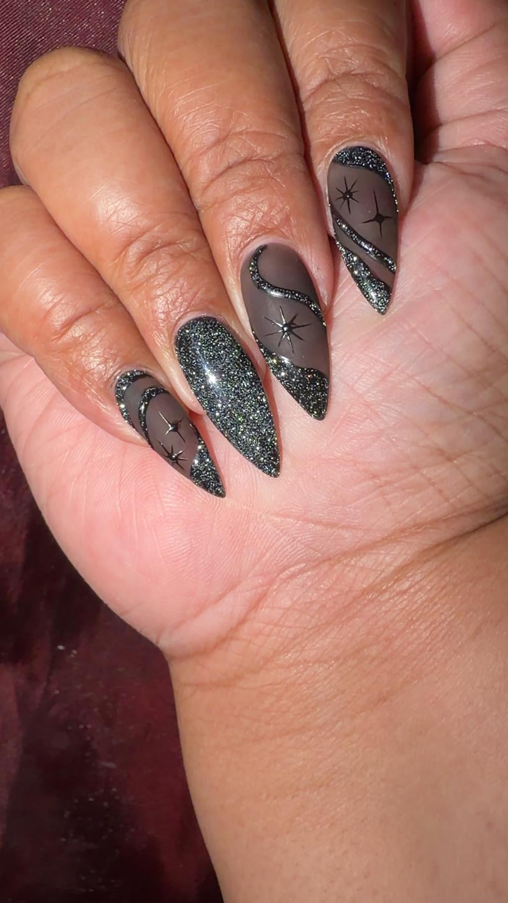 So I wanted black nails like really bad this time but in true me fashion they couldn’t be JUST black lol. Plus I had a reflective glitter I bought last year that I never got around to using. by anonnynonny123