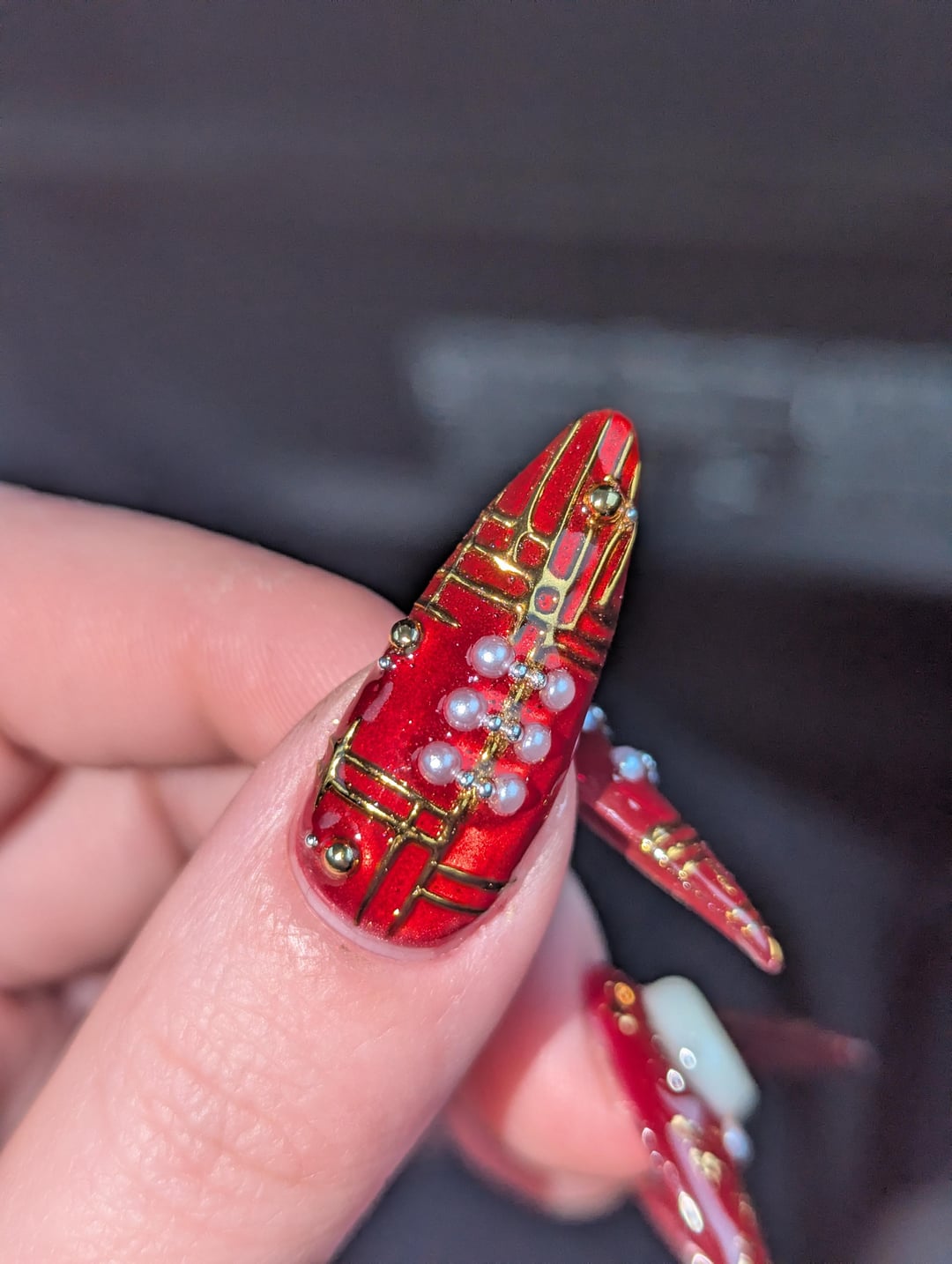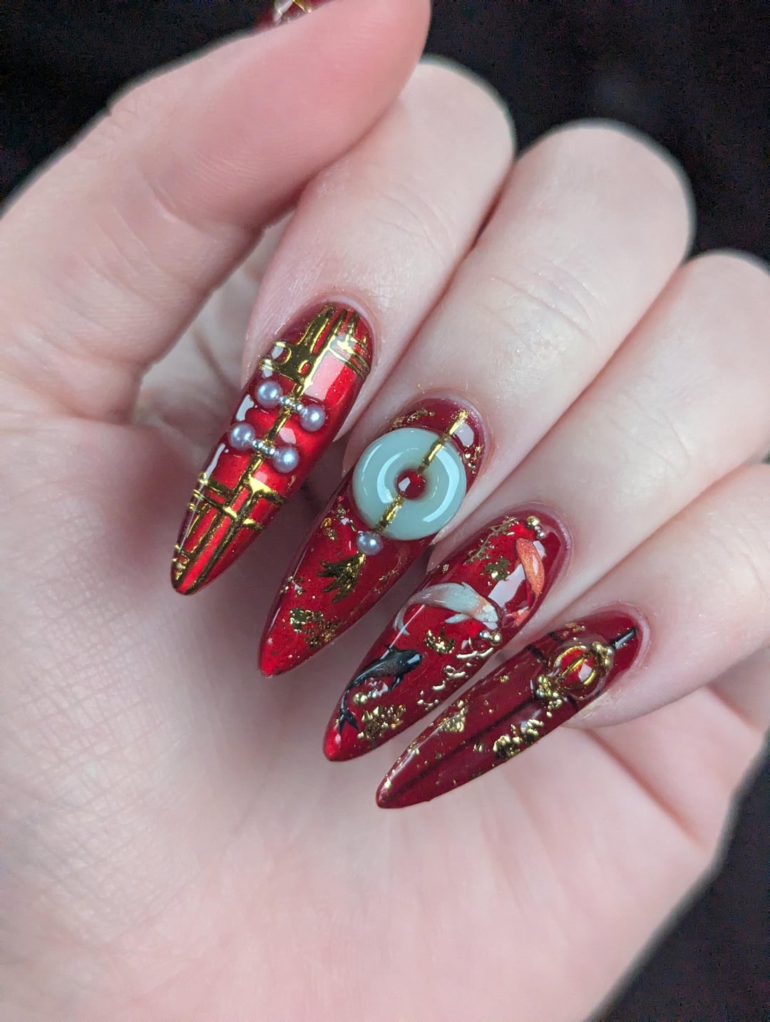 Its been so long since I've done nail art and I am so happy with how these came out ✋🏻🥹✨ a little late but I hope you all had a lovely Chinese new year!! 🧧🗣️🔥 by riceumilktea