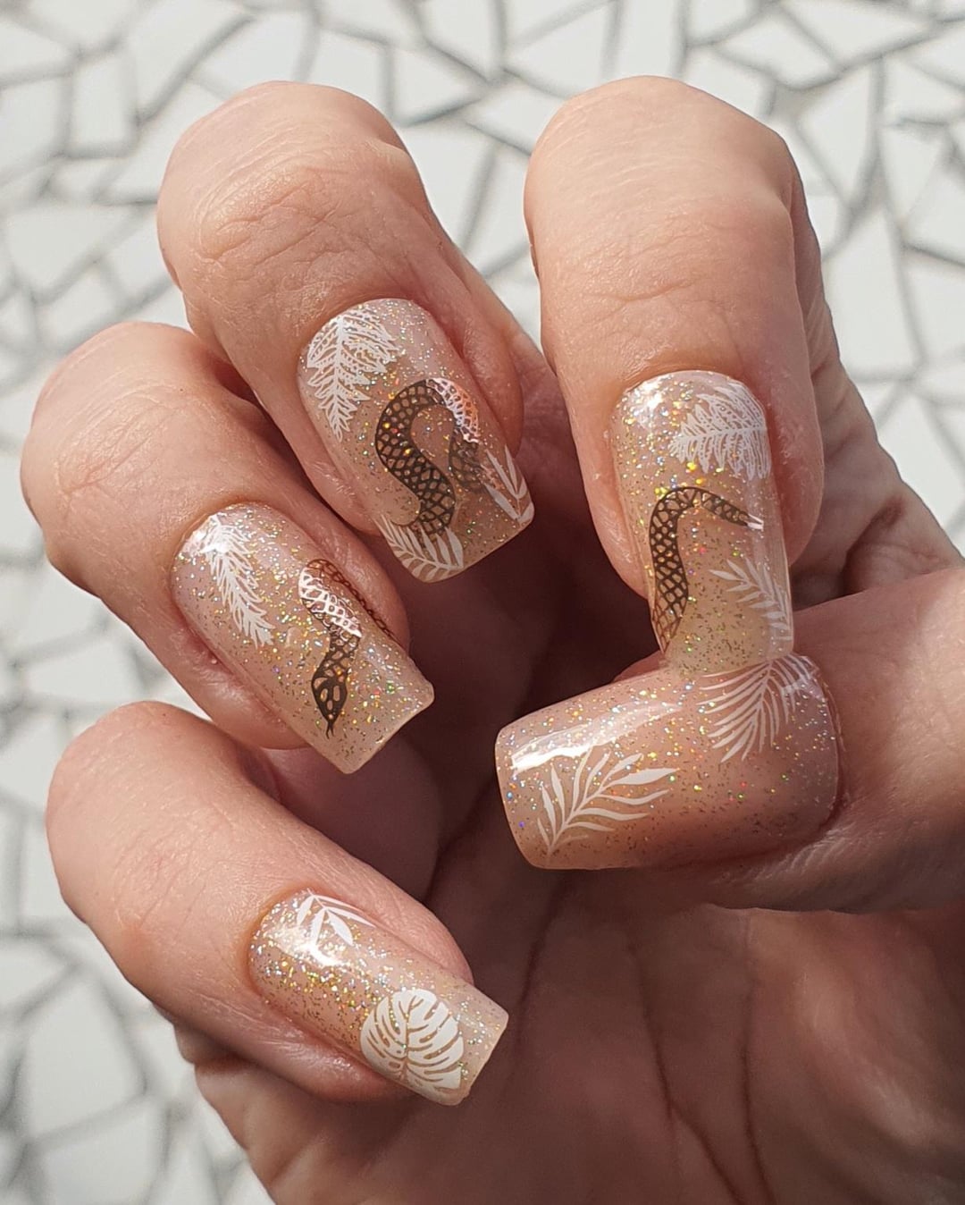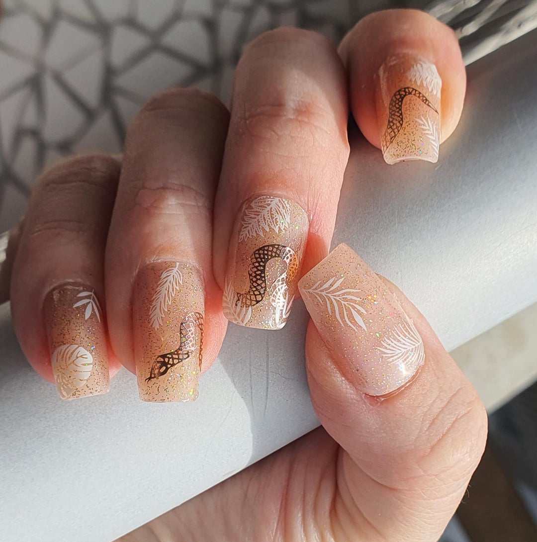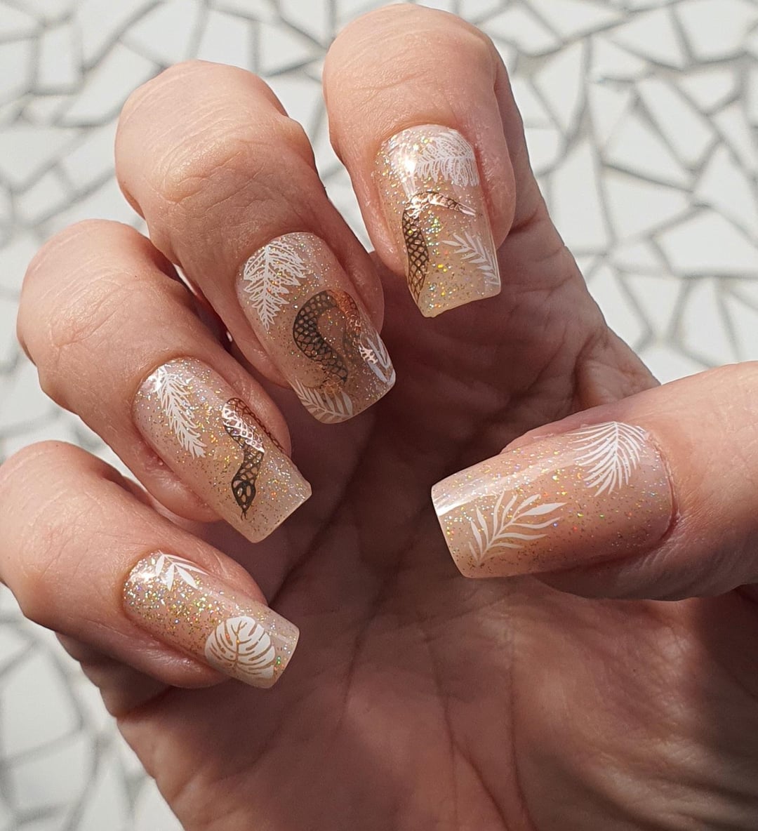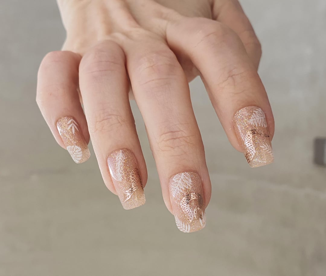For this set, I used : *full coverage nude glitter nail tips * stickers : F564 and SW-SJ010 Glossy top coat by Key_Opportunity_7082