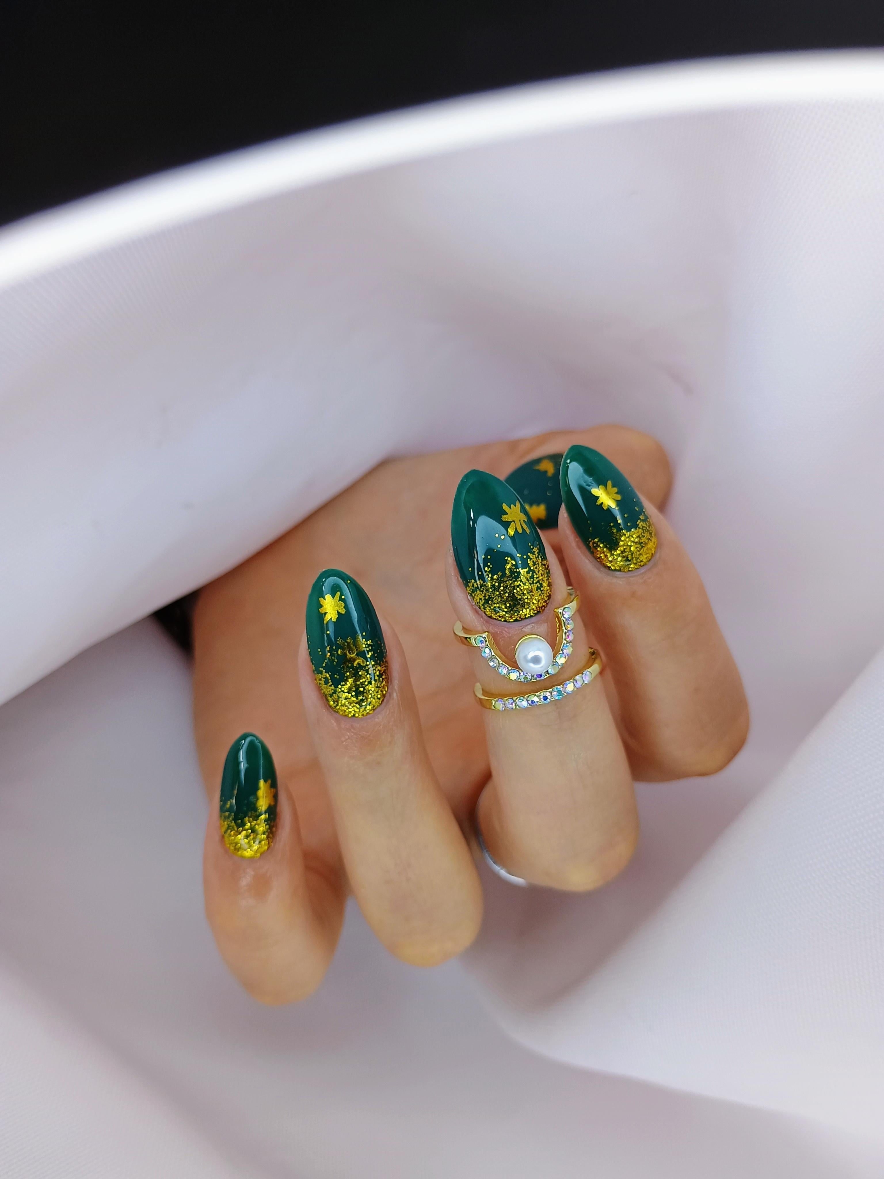Verde esmeralda con brillos dorados🤩